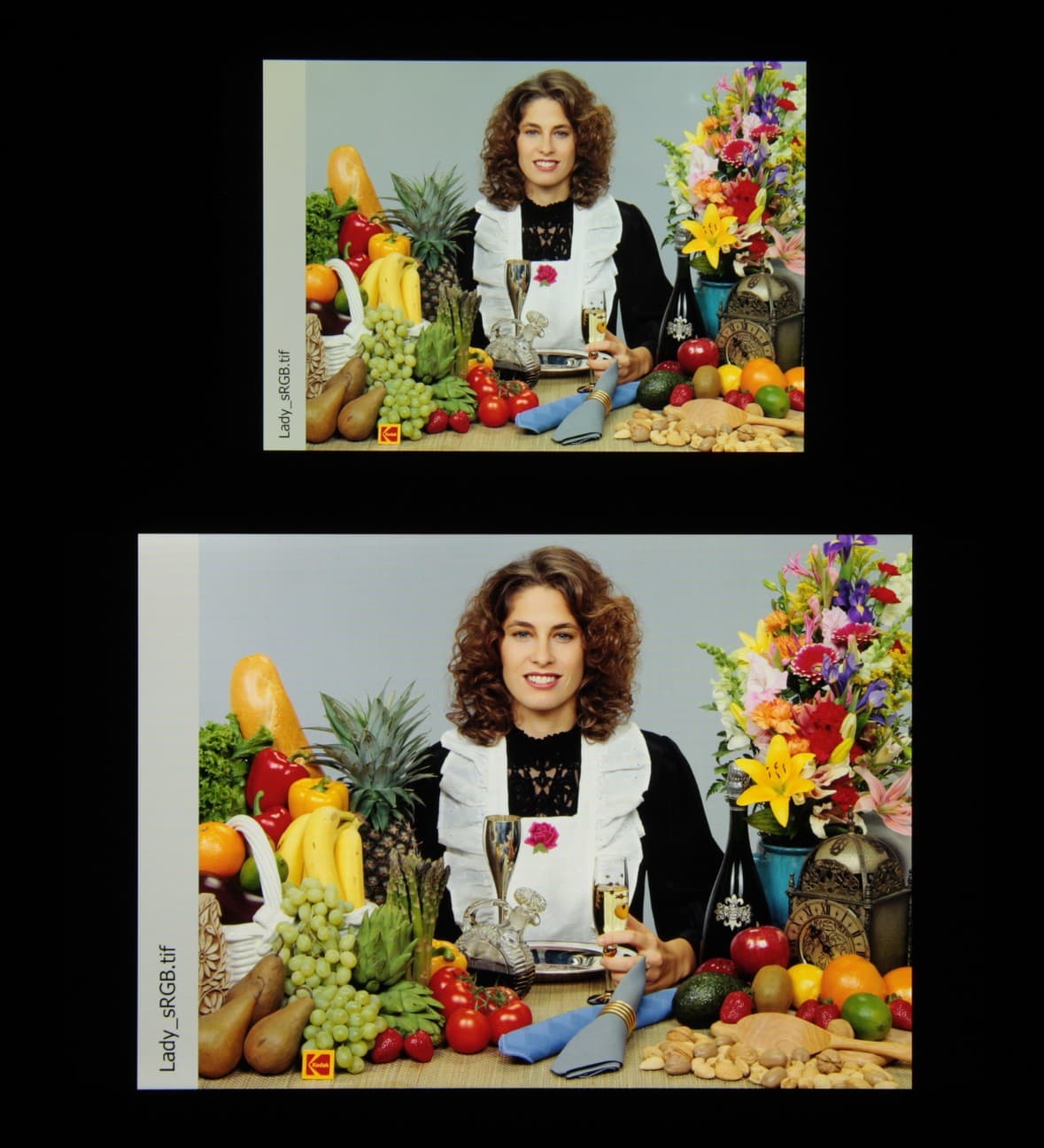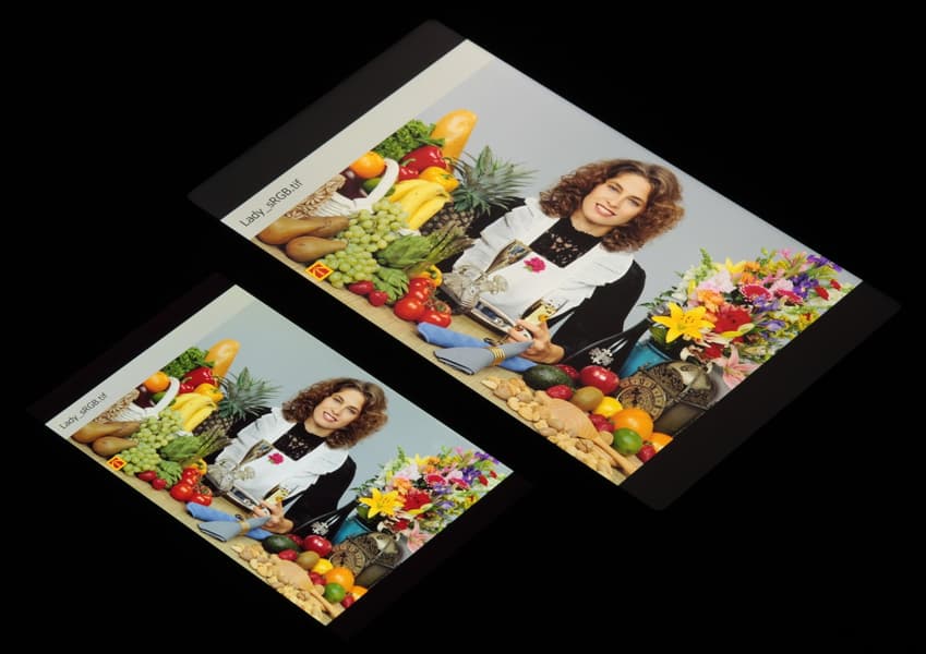 Видно, что цвета не сильно изменились у обоих экранов, но у Huawei MatePad SE контраст уменьшился в большей степени из-за большего высветления черного.