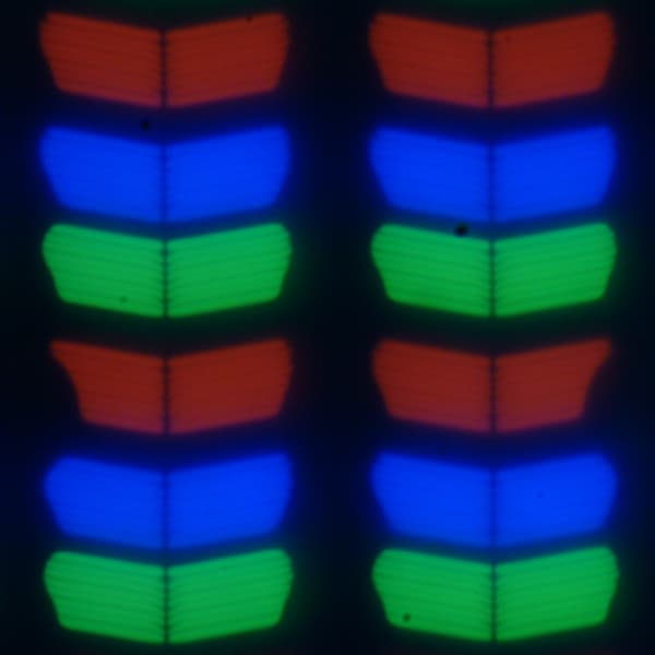 В данном планшете используется матрица типа IPS. Микрофотографии демонстрируют типичную для IPS структуру субпикселей: