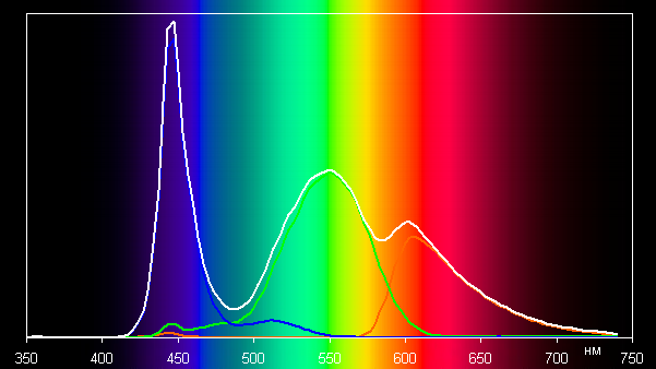 Спектры показывают, что светофильтры матрицы в умеренной степени подмешивают компоненты друг к другу: