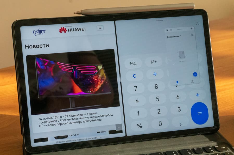 Кроме того, далеко не у всех ноутбуков есть сенсорный экран, а здесь он вообще — часть концепции планшета. Плюс Huawei MatePad11 поддерживает работу со стилусом M-Pencil второго поколения. Он отслеживает 4096 степеней нажатия, так что подходит не только для заметок в тексте (на планшете предустановлен текстовый редактор со встроенным движком распознавания текста и вычисление Nebo — обязательно стоит попробовать), но и для рисования. С компьютером для этого понадобился бы отдельный графический планшет.