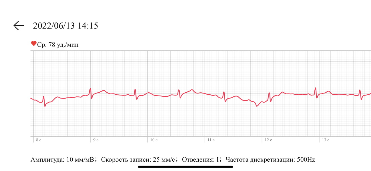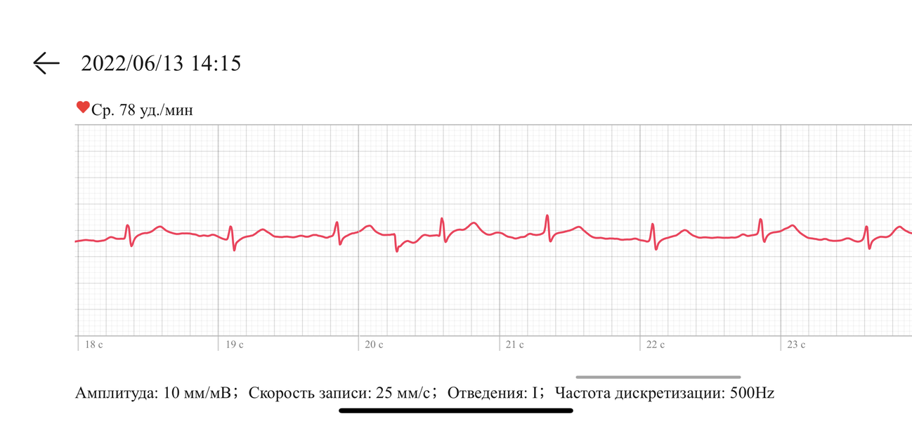 Кроме того, здесь есть измерение ЭКГ. Чтобы сделать анализ, надо запустить соответствующее приложение в часах и прикоснуться пальцем к кнопке Health. Вот результат.