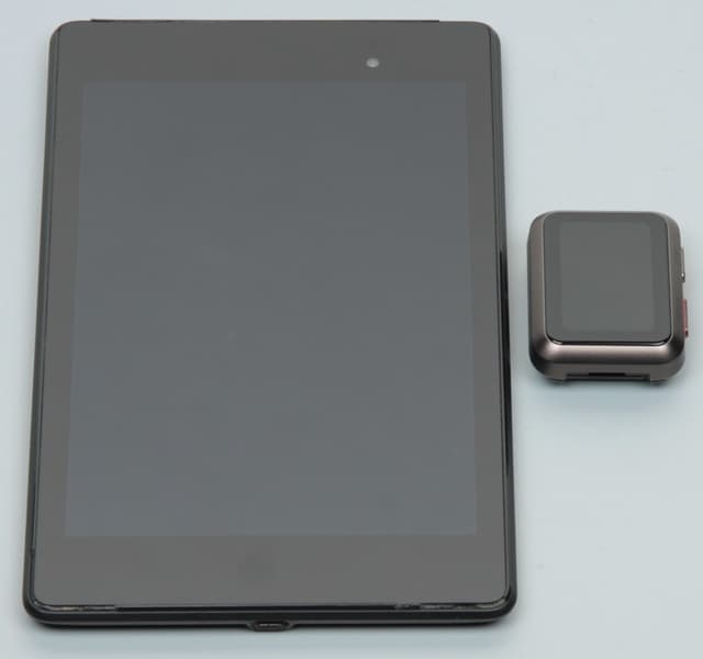 Экран у часов немного темнее (яркость по фотографиям 103 против 105 у Nexus 7). Двоение отражения слабое, это свидетельствует о том, что между слоями экрана нет воздушного промежутка. Внешняя поверхность экрана часов обладает выраженными олеофобными (жироотталкивающими) свойствами (которые заметно лучше, чем у Nexus 7), поэтому следы от пальцев удаляются существенно легче, а появляются с меньшей скоростью, чем в случае обычного стекла. Вывести произвольное изображение на экран часов можно только в виде фона циферблата, но и это позволило провести ряд тестов. При выводе белого поля и при ручной регулировке максимальное зарегистрированное нами значение яркости составило порядка 380 кд/м² (столько же в режиме фонарика, а в автоматическом режиме на очень ярком свету чуть больше – 420 кд/м²). С учетом отличных антибликовых свойств это позволит разглядеть изображение на экране часов в условиях сильной засветки (ясный день на улице). Минимальное значение — 10 кд/м² (столько же в автоматическом режиме в темноте), то есть в полной темноте яркость получится снизить до комфортного уровня. Есть и режим с автоматической регулировкой яркости по датчику освещенности с настраиваемым уровнем яркости в текущих условиях. Согласно субъективным оценкам этот режим работает адекватно, правда, яркость понижается, только после отключения экрана и включения его снова.