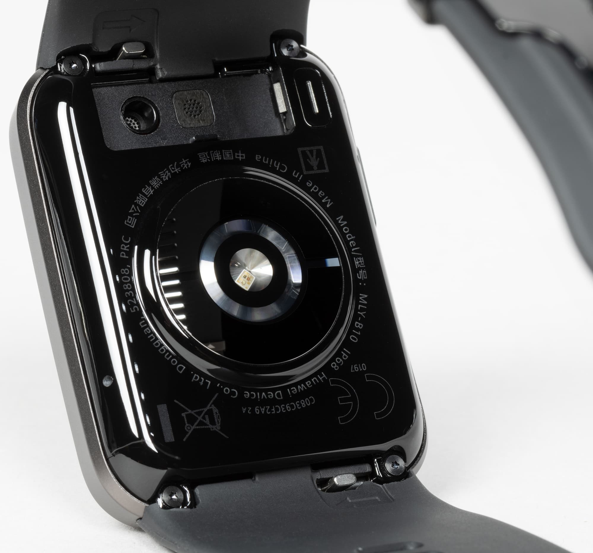 Бо́льшая часть корпуса выполнена из алюминия. Металлические здесь и обе кнопки, расположенные на правой грани. Одна — «Домой», другая же — «Здоровье» — запускает приложение для измерения кровяного давления, а еще используется при измерении ЭКГ (к ней надо прикладывать палец).