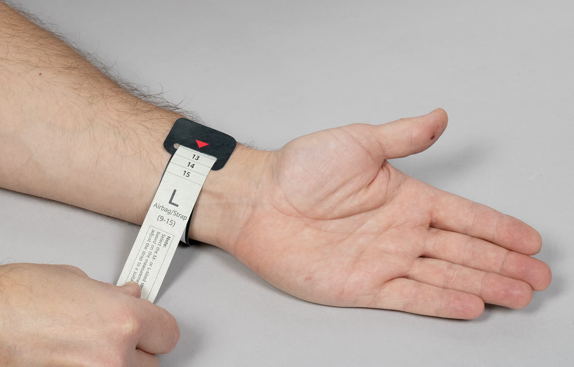 Сложно? Да, весьма. Это тот случай, когда вам точно придется почитать руководство перед началом использования устройства. Собственно, главная проблема — отрегулировать ремешок и манжету так, чтобы они плотно прилегали к запястью. Таково условие корректного измерения давления. Часы не должны болтаться или, напротив, пережимать руку. Чтобы добиться нужного результата, нам предлагают воспользоваться бумажным измерителем: ленту надо обмотать вокруг запястья и посмотреть, на какую цифру указывает стрелка. Аналогичные цифры есть и на ремешке, соответственно, при регулировке застежки ремешка будет понятно, на каком значении ее закреплять.
