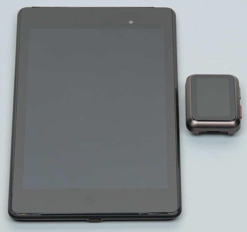 На фото ниже можно увидеть размер рамки вокруг дисплея. Она весьма толстая, но это компенсируется скруглением граней стекла (то, что называется 2.5D) и маскируется циферблатами с черным фоном.