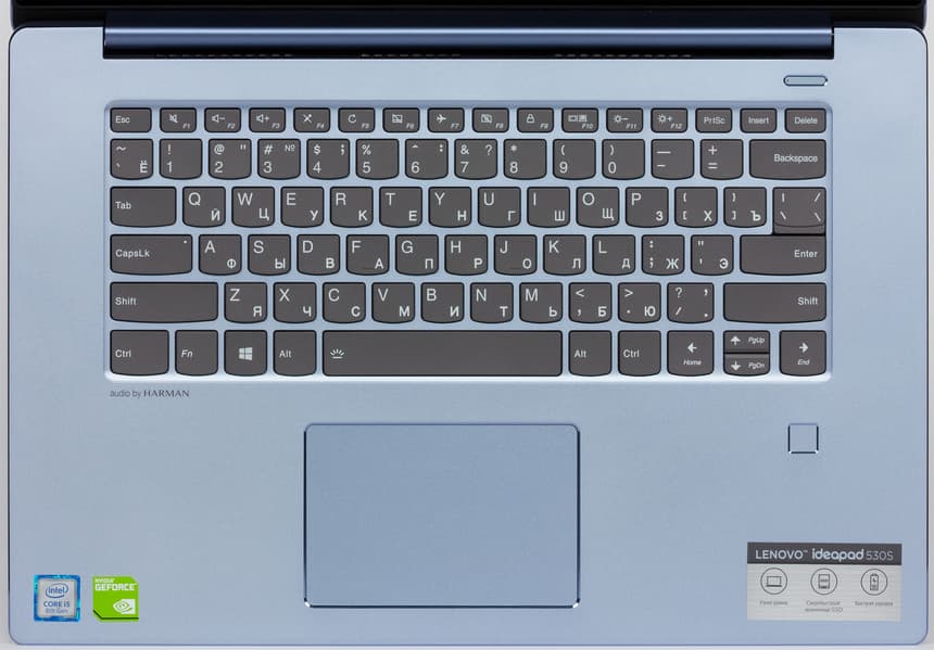 В Lenovo Ideapad 530S реализована забавная функция, сближающая это устройство со смартфонами: если нажать любую кнопку на клавиатуре выключенного (но не разряженного «в ноль») ноутбука, на экране на короткое время высветится оставшийся процент заряда батареи.