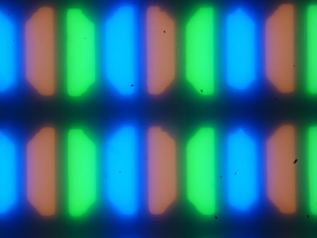 В этом ноутбуке используется матрица типа TN. Микрофотографии демонстрируют типичное для TN отсутствие тонкой структуры субпикселей (черные точки — это пыль на матрице фотоаппарата):