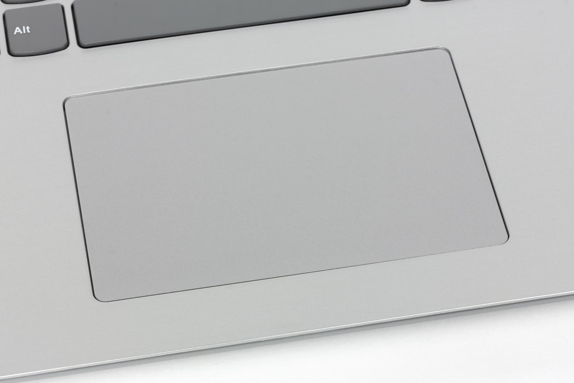 В традиционном месте под клавиатурой расположен немного заглубленный тачпад размером 105×70 мм. В данном случае он не имеет выделенных клавиш, нажатие можно выполнить практически по всей площади сенсорной панели, но усилие для этого требуется неравномерное (легче всего это сделать в нижней части). Нажатие условно в правом нижнем углу воспринимается как нажатие правой кнопки мыши, но попасть туда не всегда удается с первого раза (как альтернативу можно использовать нажатие двумя пальцами в любом месте). У кликпадов есть свои поклонники, но авторы статьи к их числу не относятся, все эти нажатия без фиксированной точки приложения усилия раздражают, часто можно сдвинуть пальцем курсор, пытаясь нащупать область надавливания. В остальном же претензий к тачпаду нет, расположен он удобно, а при желании его можно быстро отключить.