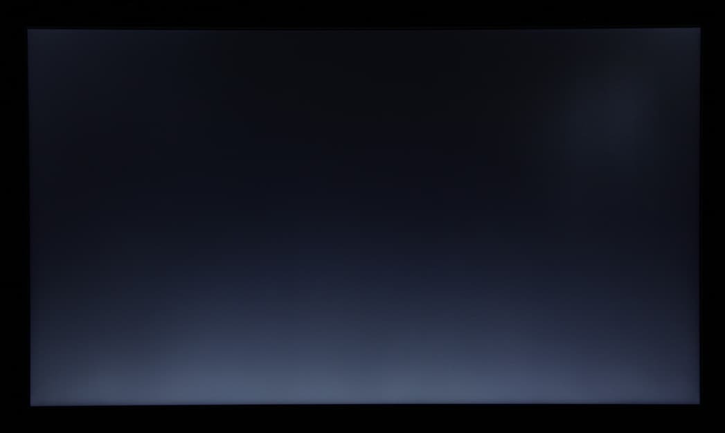 Если отступить от краев, то равномерность белого поля хорошая, а черного поля и, как следствие, контрастности — немного хуже. Контрастность даже для данного типа матриц низкая. Фотография ниже дает представление о распределении яркости черного поля по площади экрана: