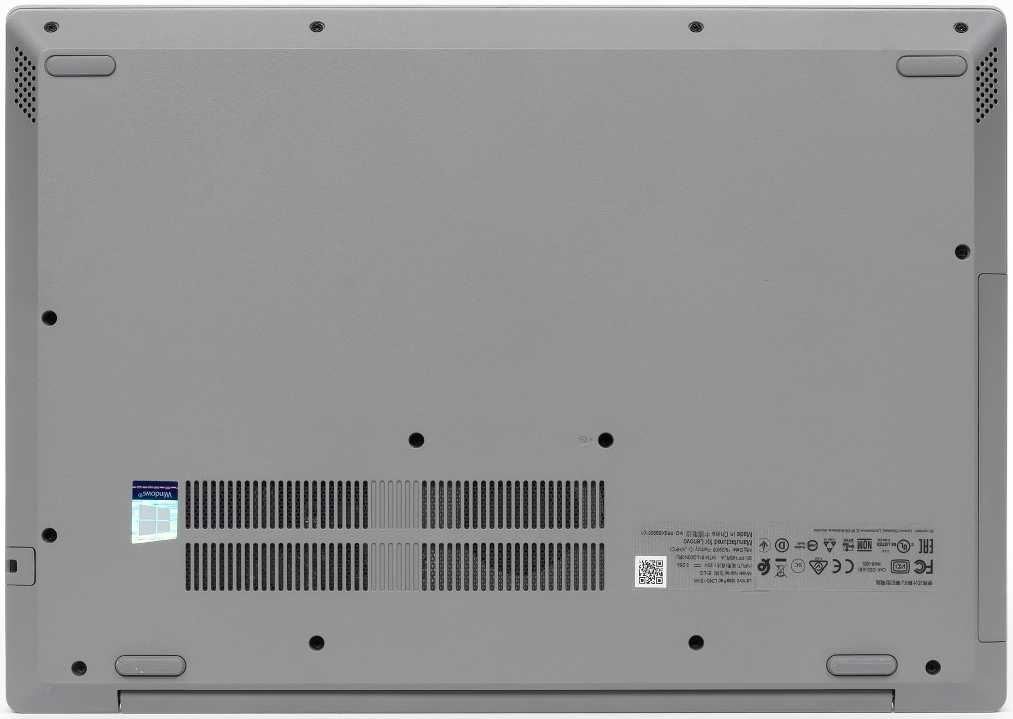 Внешний вид Lenovo IdeaPad L340-15IWL не порождает никаких мечтательных ассоциаций. Да, у корпуса по современной моде скошены грани, но все равно он не производит впечатления особо тонкого и изящного. Габариты — примерно 36,5×25,5×2,5 см (толщина корпуса без учета ножек — 23 мм), то есть довольно стандартные размеры для ноутбука с экраном 15,6”, но далеко не передовые, особенно толщина. Вес в 1,83 кг можно охарактеризовать как небольшой для своего класса.