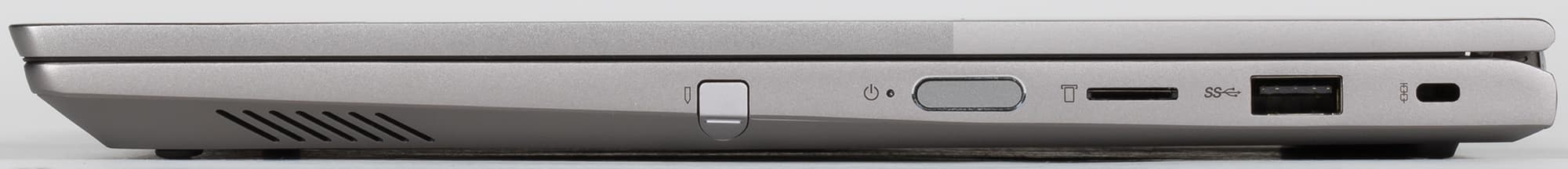 Справа заметен стилус, утопленный вглубь корпуса заподлицо, выключатель питания, слот для карточки microSD, второй порт USB3 Type-A и отверстие кенсингтонского замка.