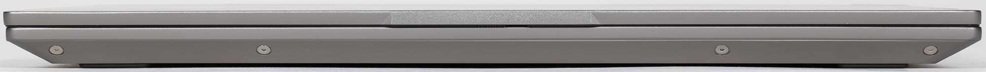 Бесполезная черная часть справа и слева от экрана имеет ширину 5 мм, сверху над экраном — 10 мм, а в центральной части, где установлена веб-камера, — 12 мм. Над поверхностью стекла на 2 мм выступает металлическая окантовка крышки. Она позволяет сохранить дистанцию между поверхностью экрана и клавиатурой.