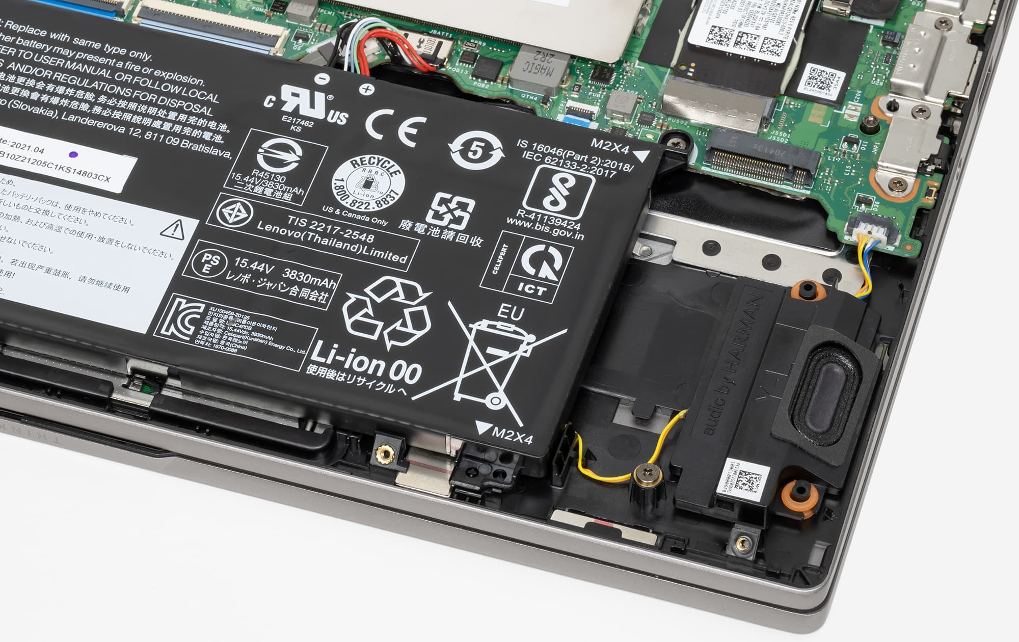Принцип организации Lenovo ThinkBook 14s Yoga ITL модульный. Монтажные блоки компонентов оптимизированы с целью максимального ускорения заводской сборки и возможной замены.