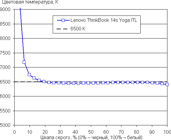 Заметим, что соперник из команды HP оказывается самым тихим в энергоэкономичном сценарии и самым шумным — в высокопроизводительном. Игрок из клуба Dell демонстрирует самый низкий уровень шума в высокопроизводительном профиле, но непозволительно высокий — в энергоэкономичном. В стандартной ситуации 20,9 дБА практически не слышны, 23,4 дБА сливаются с фоновыми звуками дома и офиса, а вот 28,3 дБА не слышать уже нельзя. Lenovo ThinkBook 14s Yoga ITL выступает в качестве пресловутой «золотой середины»: его минимальный уровень шума ниже, чем у Dell XPS 13 9310, а максимальный ниже, чем у HP Envy x360 13. На практике выбор в пользу того или иного устройства должен определяться энергоемкостью решаемых задач. Если предстоит работать в основном с офисными приложениями — связь по почте, в мессенджерах и VoIP, просмотр веб-страниц, фильтрация новостей, биржевых сводок и курсов валют — следует предпочесть участников под марками HP и Lenovo; если же машине придется всё время «поджариваться» под большими нагрузками, например в графических и видеоредакторах (хотя на практике с портативными ПК такого обычно не случается), то выбор должен пасть на представителя Dell. Правда, если учитывать цену устройства, право на избрание вновь переходит к герою нашего обзора.