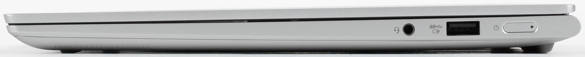 Интерфейсных разъемов немного и по бокам. Слева расположены два порта USB3 Gen2 Type-C, любой из них может служить разъемом питания при подключении штатного адаптера. К слову, хотя штатный адаптер трудно назвать крупным, кому-то может оказаться удобнее купить еще более компактный источник питания на 65 Вт (требуется лишь, чтобы он выдавал 20 В 3,25 А). Разъемы USB Type-C можно также использовать для вывода видео и подключения дополнительных мониторов, поддерживается DisplayPort 1.4.