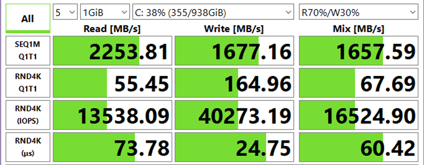 Картина выглядит неплохо. Для ее полноты приведем ниже результаты аналогичных испытаний SSD-накопителей в двух других мобильных ПК, Samsung MZ-ALQ512H в трансформере Lenovo ThinkBook 14s Yoga ITL и Kioxia KXG60ZNV1T02 в ноутбуке Dell XPS 13 9310.