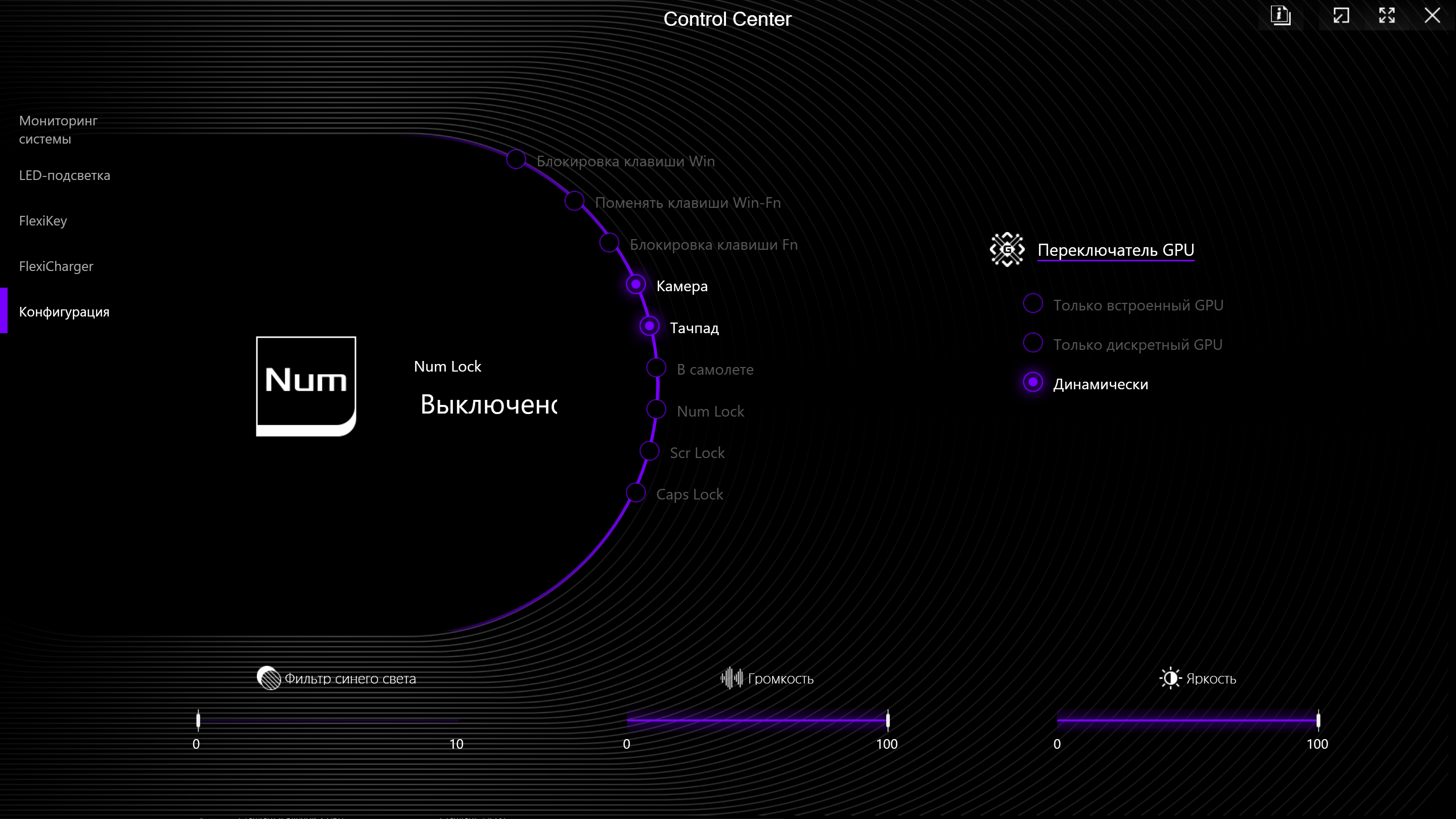 | Устройства ввода | Клавиатура | с динамической подсветкой (per key RGB) |