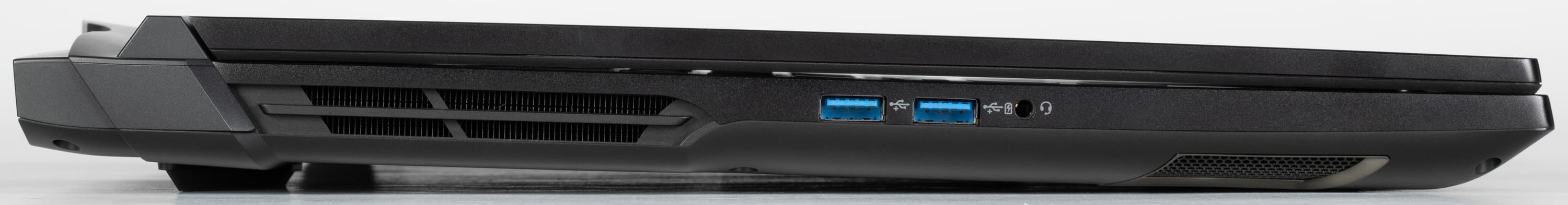 На левой боковой панели помещаются два порта USB 3.2 Gen2 Type-A и комбинированный аудиоразъем (миниджек 3,5 мм) для подключения аудиогарнитуры.