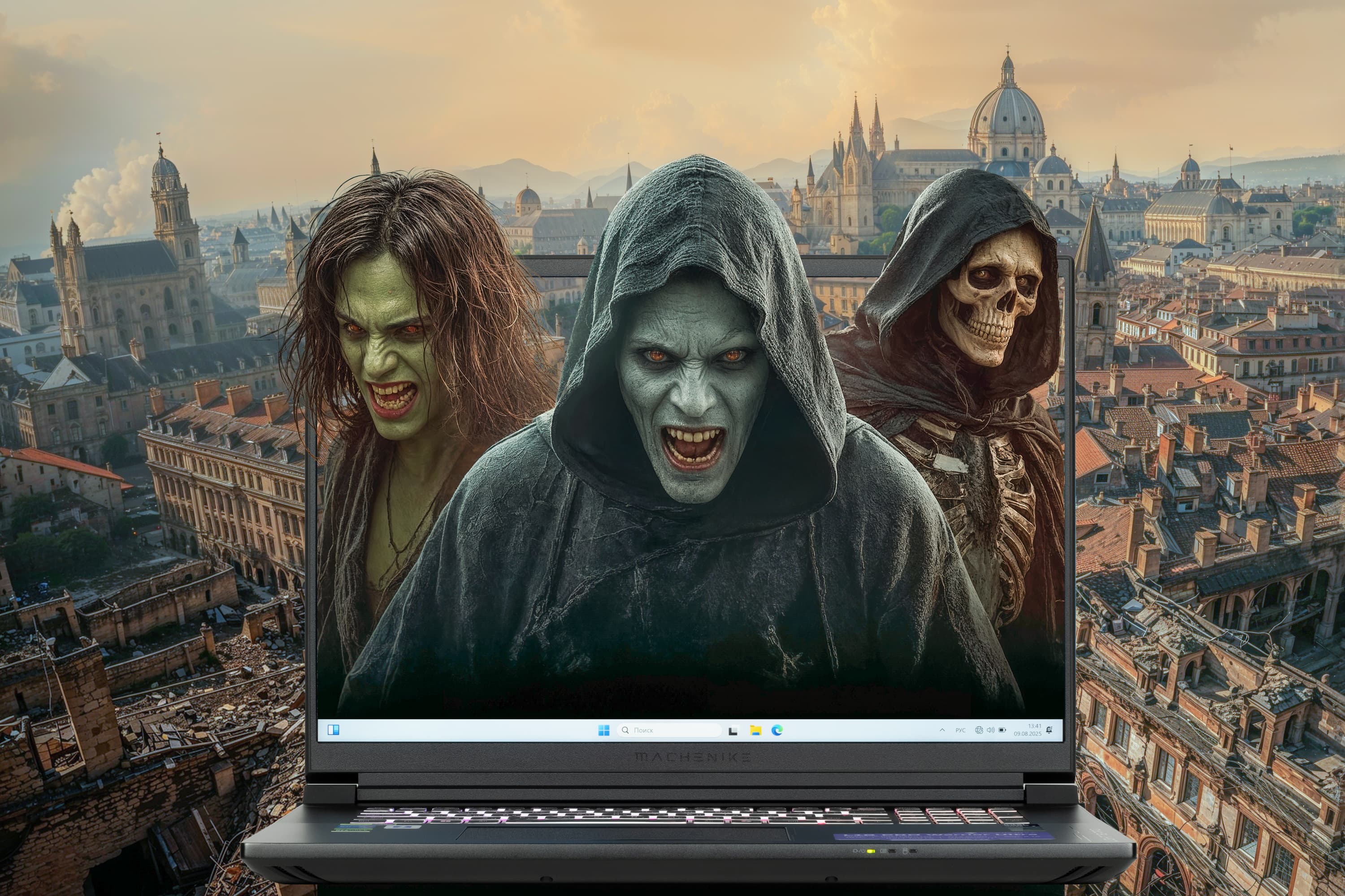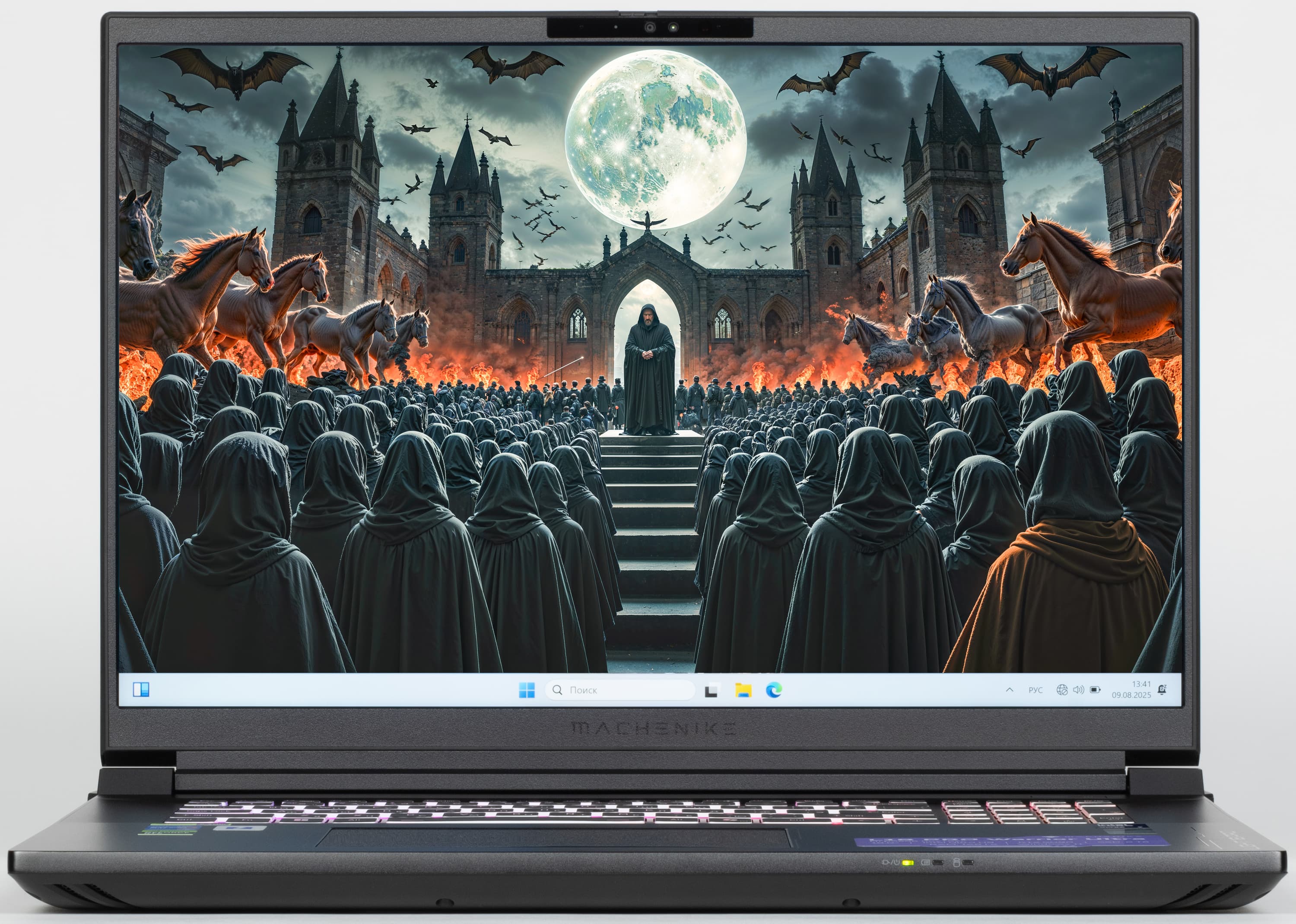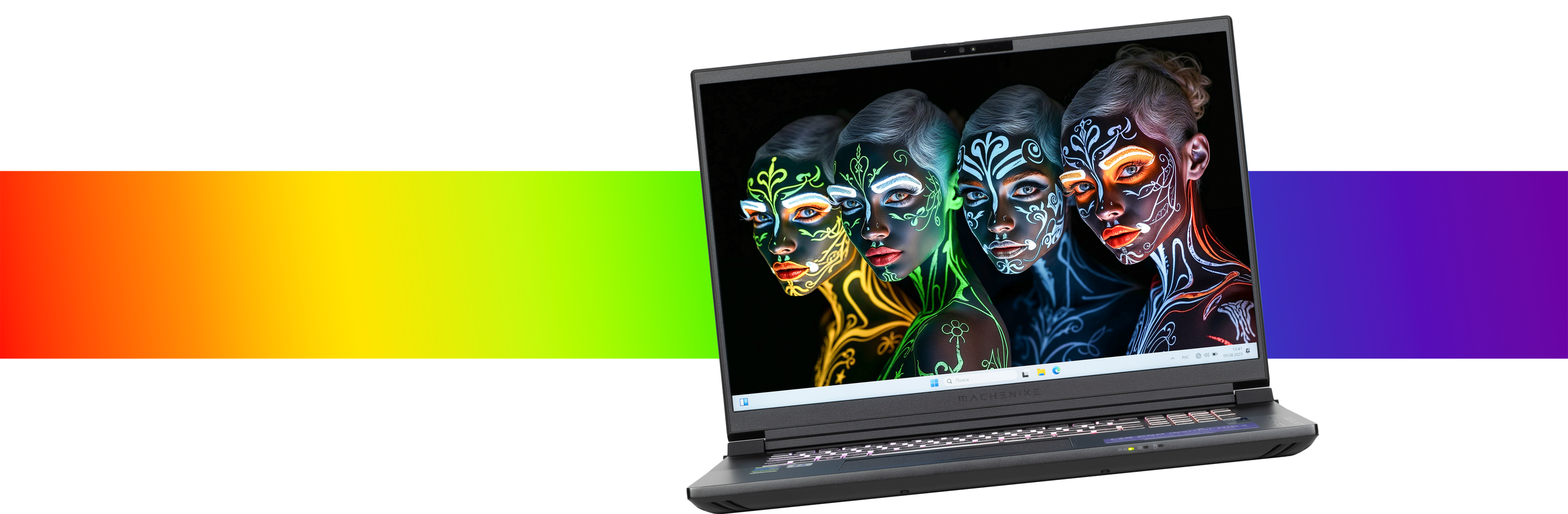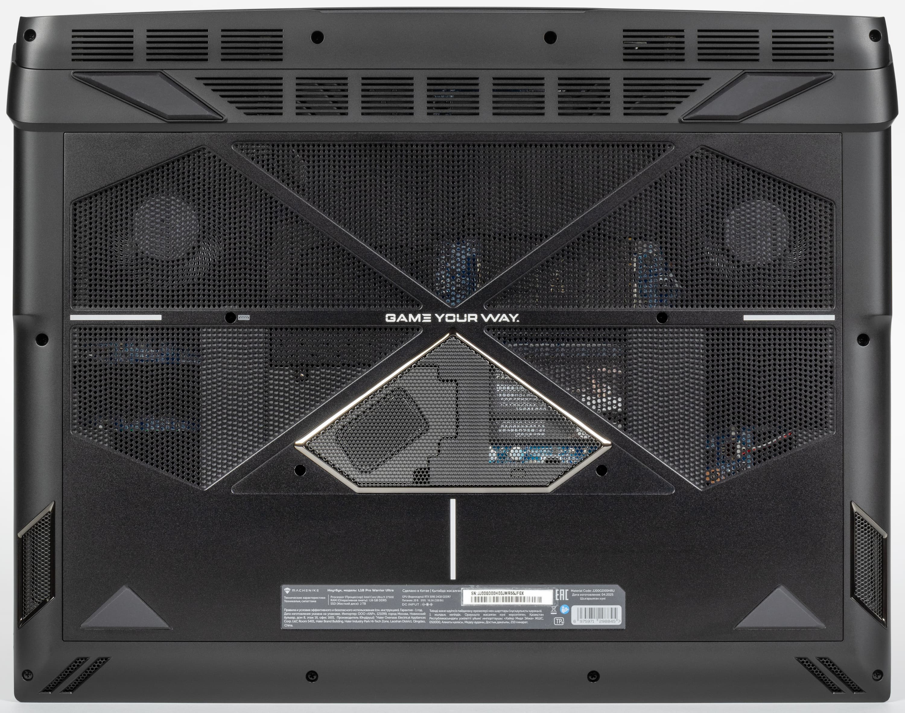 Игровой монстр под маркой Machenike олицетворяет собой настоящий прорыв в ноутбукостроении континентального Китая. Маркетинговое шоу открывают субтоповый процессор Intel Core Ultra 9 второго поколения и топовая видеокарта Nvidia GeForce RTX 5090 Laptop. Им ассистирует небывалый объем оперативной памяти — 128 ГБ, что делает систему по-настоящему уникальной. Экран не OLED, а традиционный IPS, но он отличается разрешением 4K, высокой частотой обновления (240 Гц), хорошей максимальной яркостью (500 кд/м²), быстрой IPS-матрицей и отличным цветовым балансом. Возможности дискретной графики расширены возможностями ее разгона, эффективность которых подтверждают наши игровые испытания по методикам 2020 и 2025 гг. Набор портов и интерфейсов включает два полноценных Thunderbolt, два USB 3.2 Gen2, HDMI, два адаптера Ethernet 2,5 Гбит/с. Благодаря последнему можно реализовать агрегацию портов (для удвоения скоростей обмена данными требуется специальный маршрутизатор) или организовать стриминг контента 8K в реальном времени через одну локальную сеть, а игровую киберспортивную среду — через другую. Помимо системного накопителя в ходе аппаратной модернизации можно дополнительно установить три SSD-накопителя. Правда, создание аппаратных RAID пока не поддерживается в BIOS Setup. По результатам наших испытаний в реальных приложениях ноутбук нужно признать одним из самых высокопроизводительных инструментов для работы с ресурсоемким ПО для креативной деятельности, причем в этом качестве портативная игровая машина опережает топовые конфигурации стационарной системы предыдущего поколения.