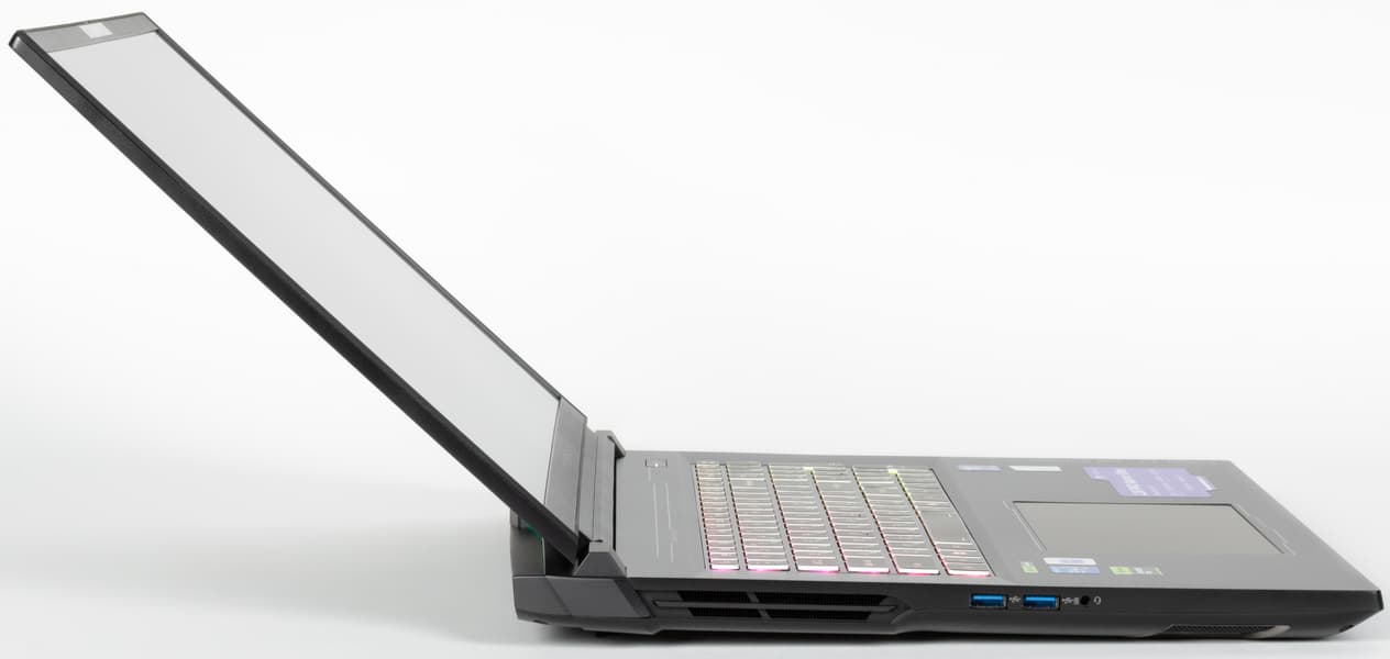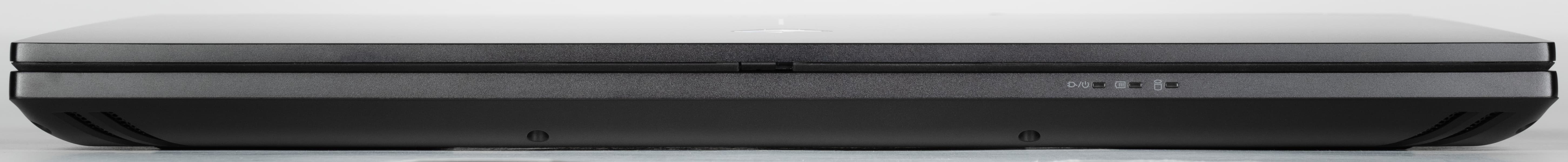 Ноутбук оснащен 18-дюймовым экраном и поэтому обладает солидными размерами и массой. Максимальный угол откидывания крышки составляет примерно 130°. Ноутбук удерживается в закрытом состоянии при помощи петель и доводчиков. Он без труда раскрывается одной рукой, и корпус при этом срабатывает как противовес, поэтому основание не сдвигается и не приподнимается над столешницей.