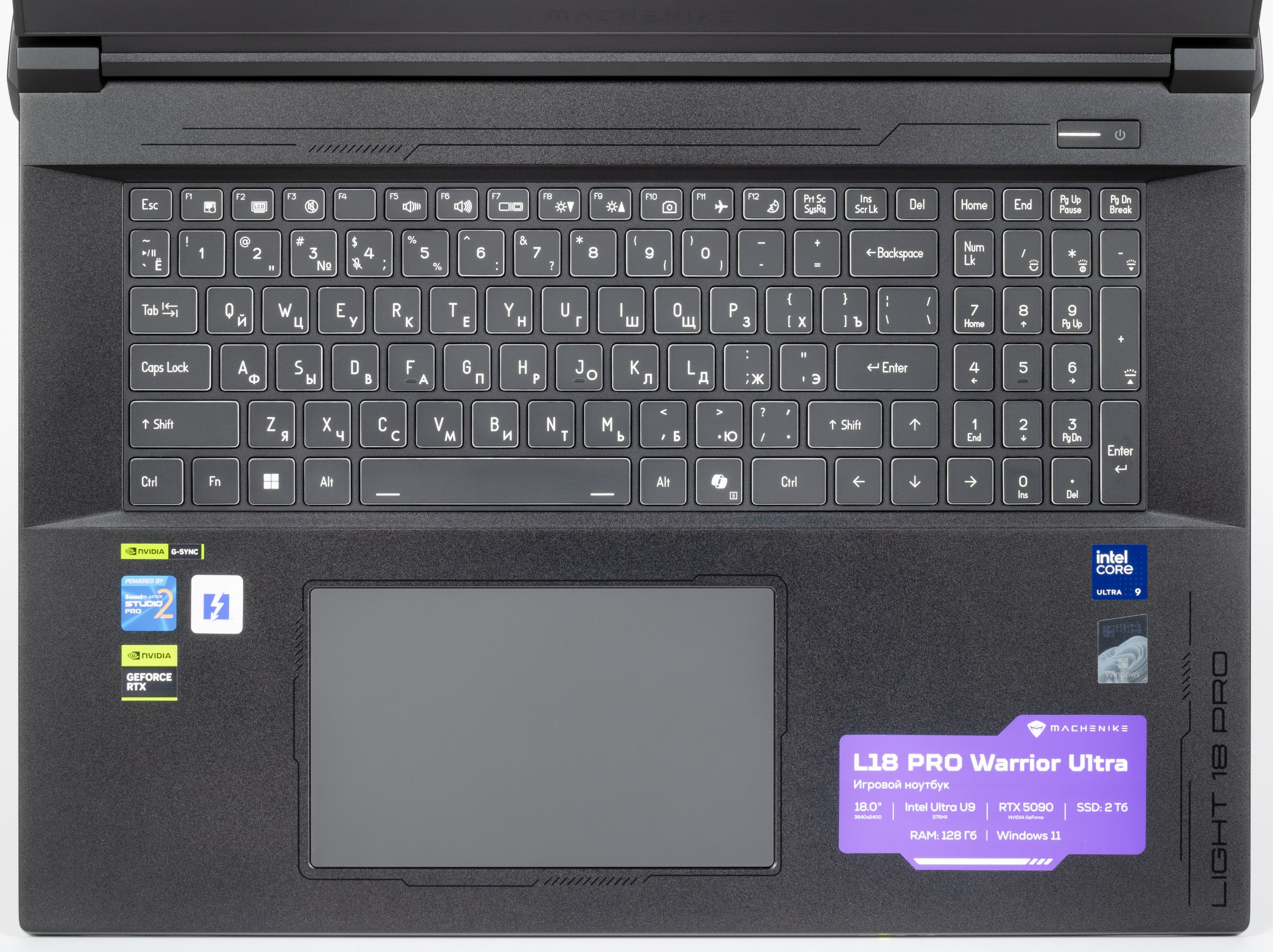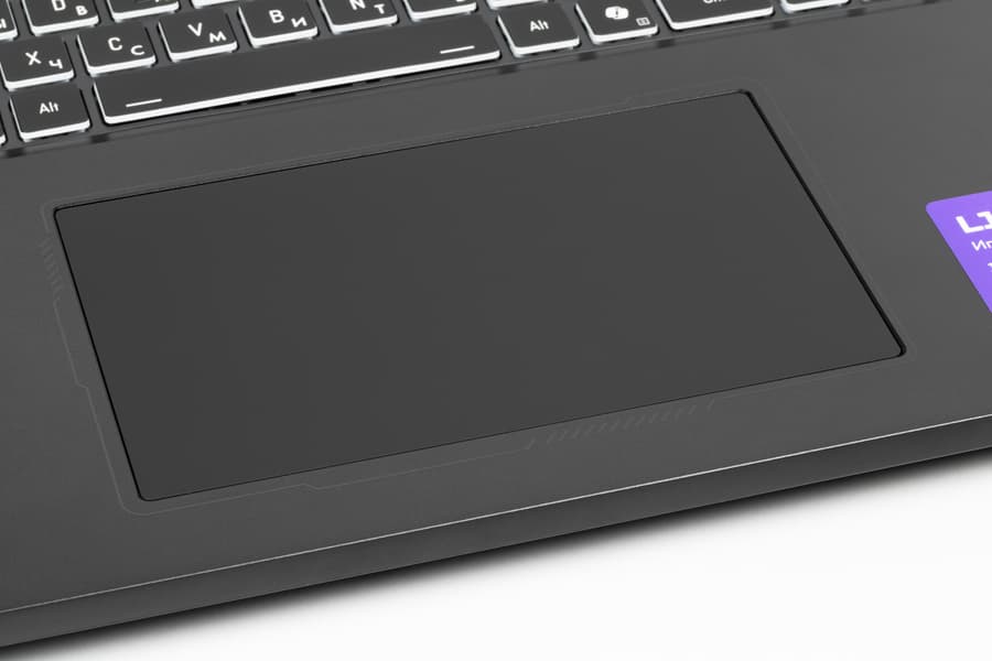 Тачпад (кликпад) заметно смещен вправо от середины. Это небрежный жест симпатии праворуким пользователям. По прихоти дизайнера на панель нанесены не слишком заметные, но оттого не более уместные рельефные элементы оформления в виде фигурной рамки кликпада и боковой надписи «Light 18 Pro».