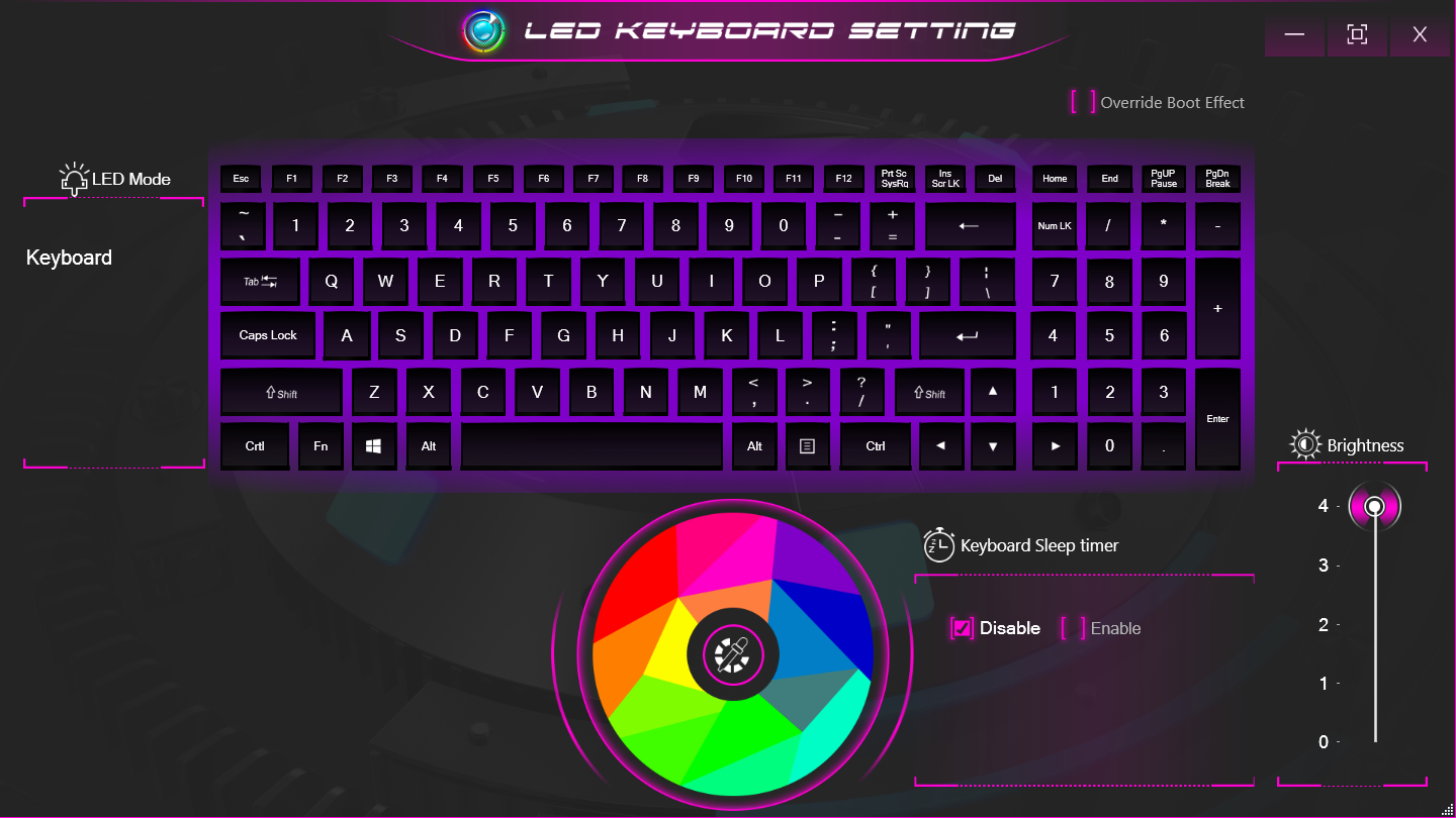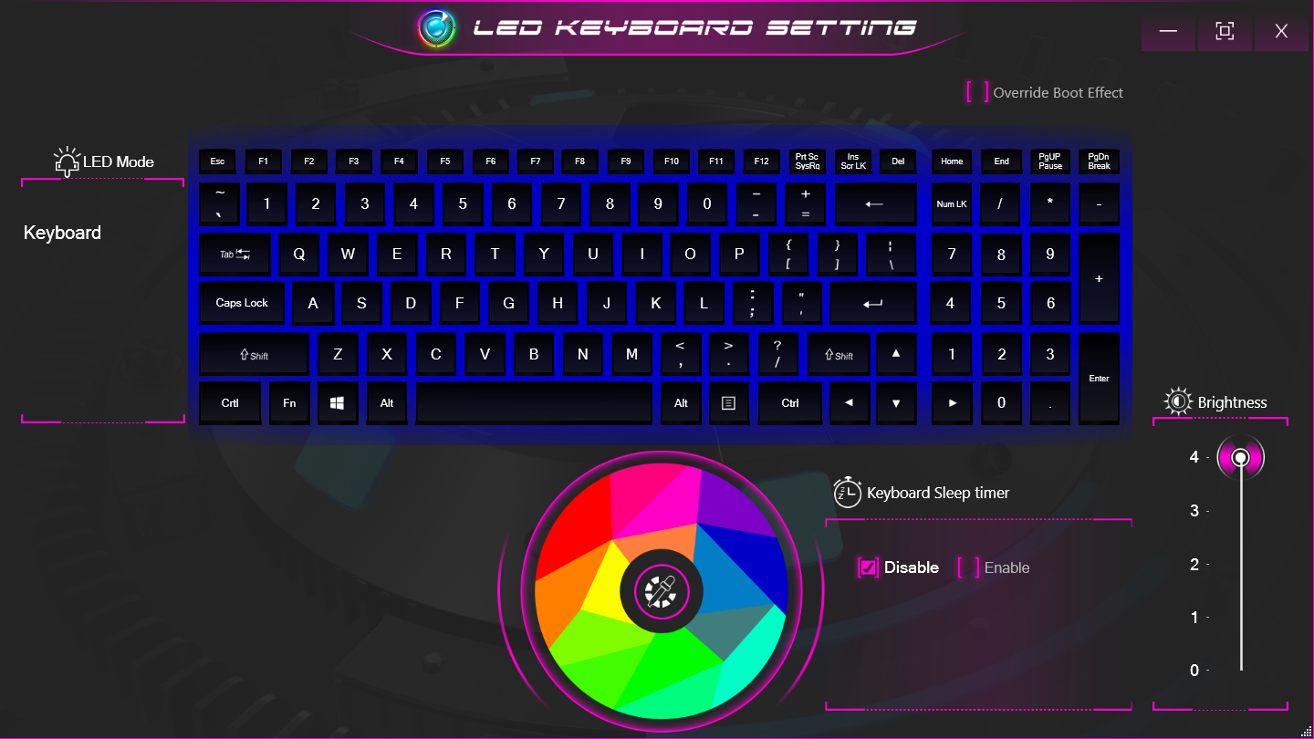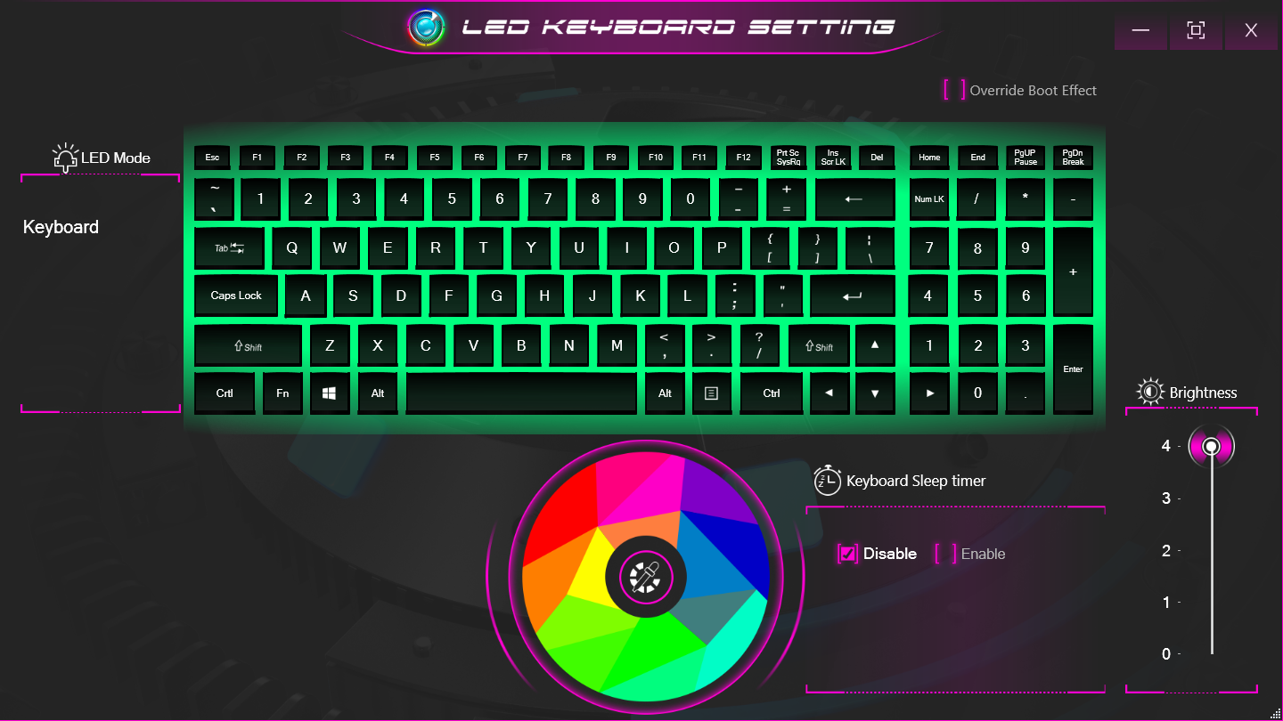 Раздел LED Keyboard позволяет изменять цвет и интенсивность подсветки клавиатуры.
