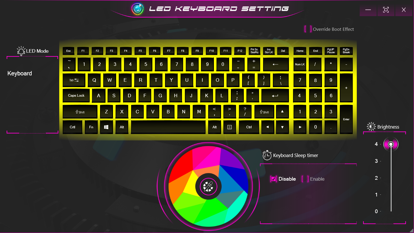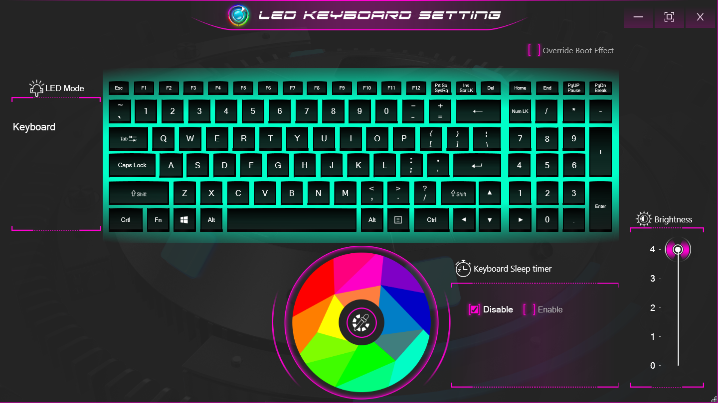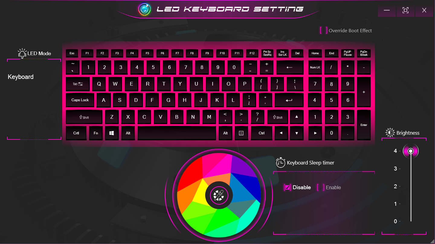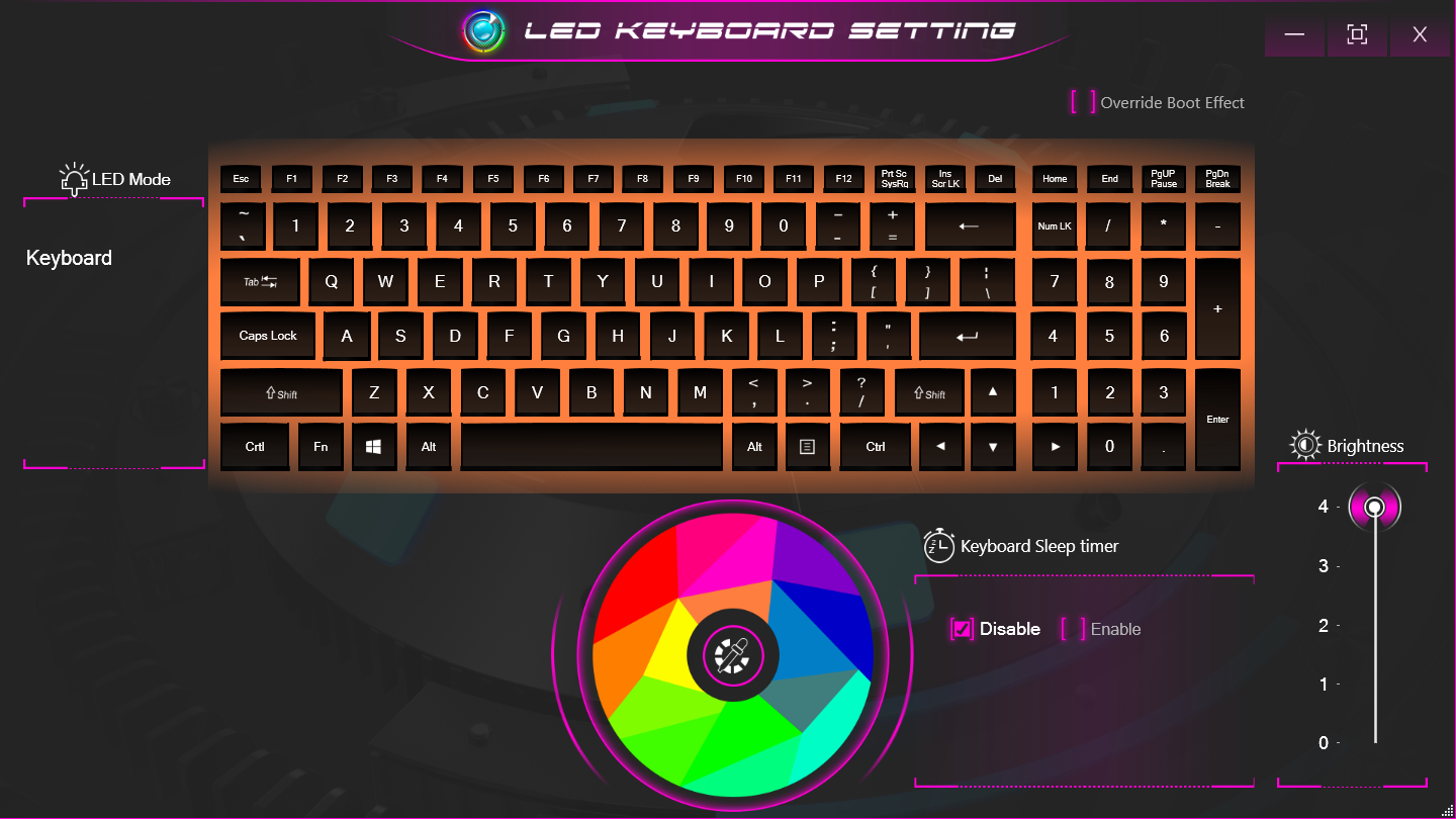 Раздел LED Keyboard позволяет изменять цвет и интенсивность подсветки клавиатуры.
