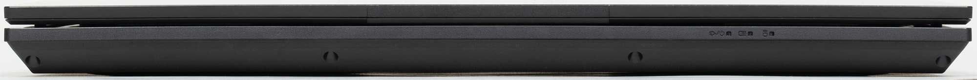 Высота стояния корпуса над столом уменьшается от задней части к передней за счет разновеликих опор, приподнимающие днище над поверхностью (сзади значительнее, чем спереди). Расстояние от столешницы до верхней точки ноутбука с закрытой крышкой составляет сзади 31 мм, спереди — 27 мм. Подобная конструкция создает небольшой наклон клавиатуры к пользователю, несколько повышающий комфорт при работе, и обеспечивает достаточное пространство для забора воздуха системой охлаждения через нижние решетки.