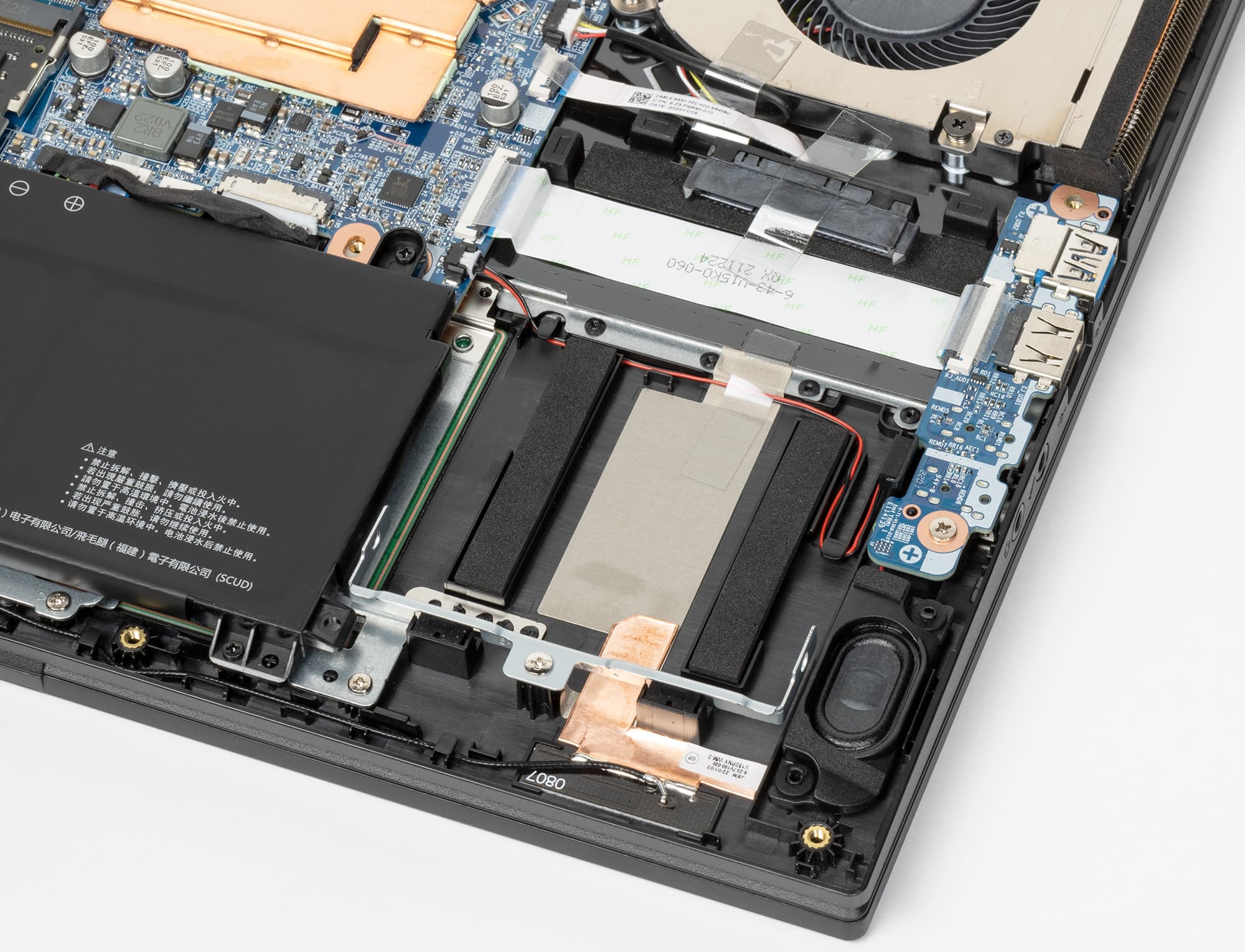 Для целей апгрейда можно использовать два слота для модулей оперативной памяти, например, заменив обе штатные планки SO-DIMM по 8 ГБ на 16 ГБ и получив таким образом 32 ГБ ОЗУ, работающего в двухканальном режиме.