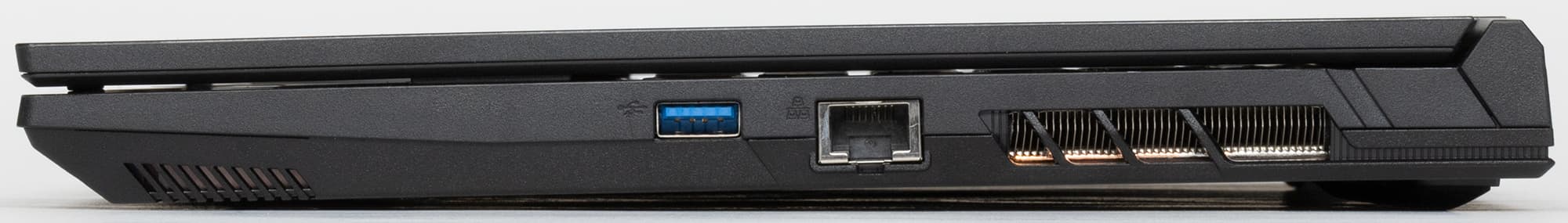 Справа имеются второй интерфейс USB3.2 Gen2 Type-A, разъем RJ-45 гигабитного адаптера локальной сети и решетка выходного отверстия системы охлаждения.