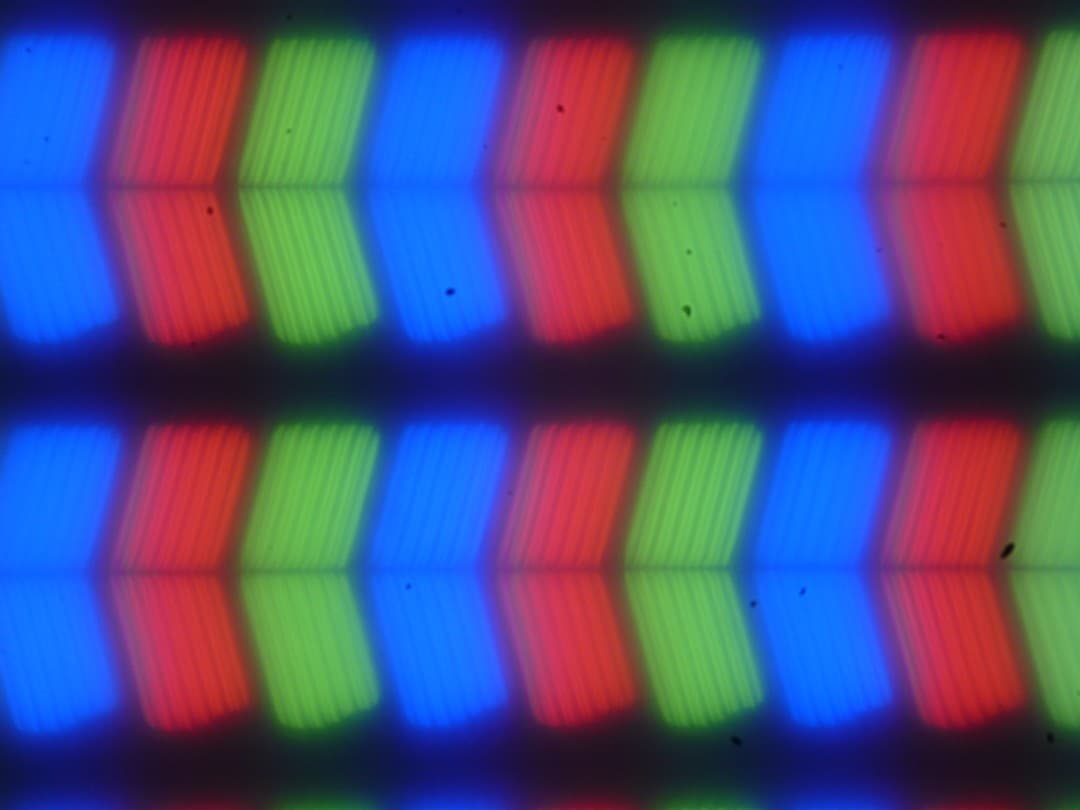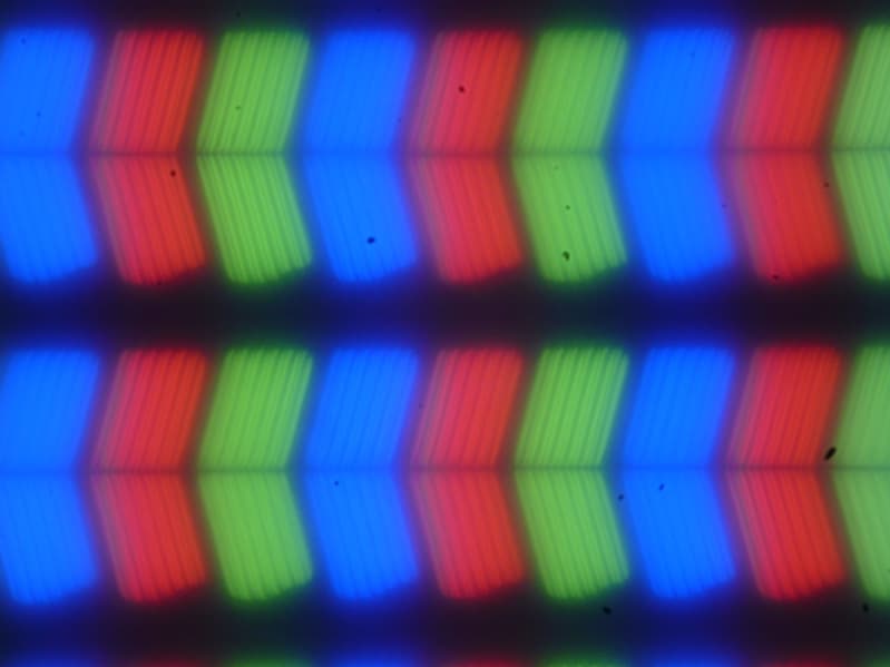 В этом ноутбуке используется матрица типа IPS. Микрофотографии демонстрируют типичную для IPS структуру субпикселей (черные точки — это пыль на матрице фотоаппарата):