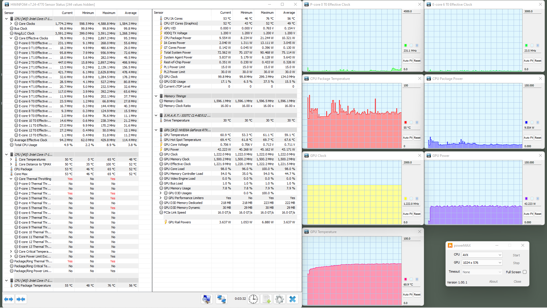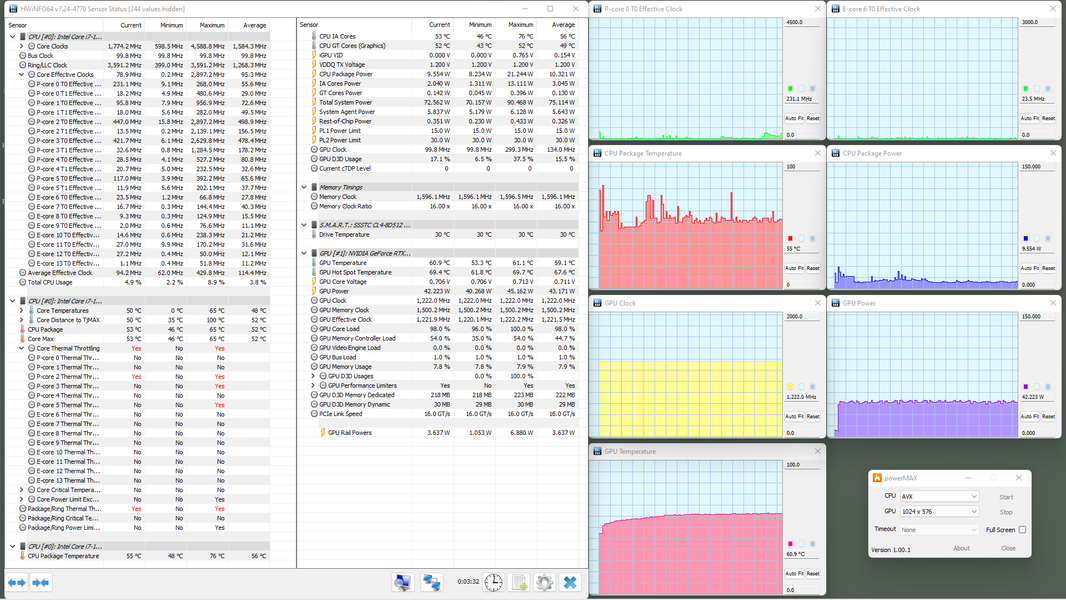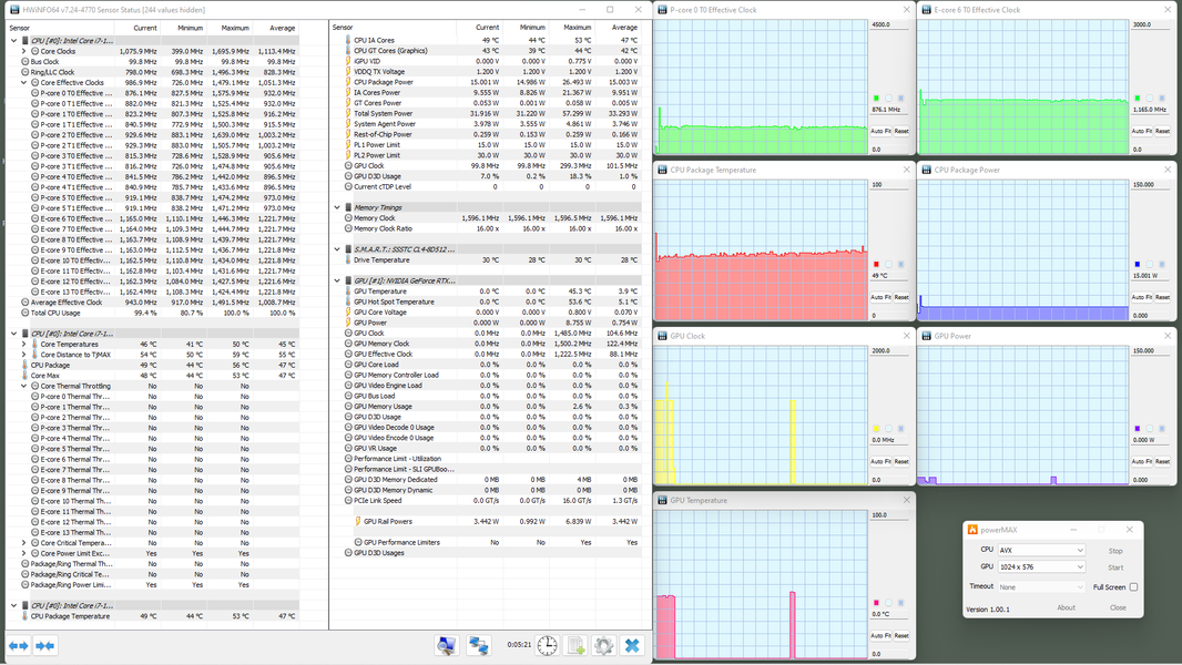 Мобильные видеокарты GeForce RTX 30, созданные на основе архитектуры Ampere, были анонсированы еще в начале 2021 года и теперь хорошо изучены. Nvidia указывает для них лишь границы диапазона рабочих характеристик, в то время как параметры работы этих решений в составе конкретной конфигурации должны определяться производителями ноутбуков. На сайте Nvidia для GeForce RTX 3050 Ti Laptop указана частота с ускорением от 1035 до 1695 МГц и потребление 35—80 Вт. К сожалению, производитель не приводит показателей тактовой частоты и отбираемой мощности для нашего испытуемого.