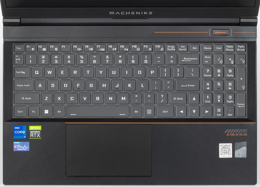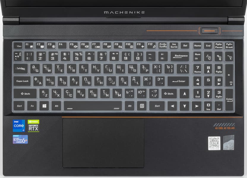 Крышка изготовлена из ударопрочного полимера черного цвета с полуматовой поверхностью, декорирована оранжевыми надписью Machenike и фирменным логотипом и обладает высокой устойчивостью к восприятию отпечатков пальцев.