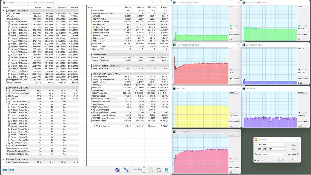 Интегрированная графика процессора Intel в играх не интересна, но в ноутбуке установлена дискретная игровая видеокарта Nvidia GeForce RTX 3050 Ti Laptop с 4 ГБ GDDR6. Как сказано выше, это бюджетное решение, поддерживающее, впрочем, трассировку лучей. Низкоуровневые параметры этого ускорителя представлены на скриншоте, мы же по итогам тестирования можем подтвердить, что он штатно работал при потреблении 55 Вт.