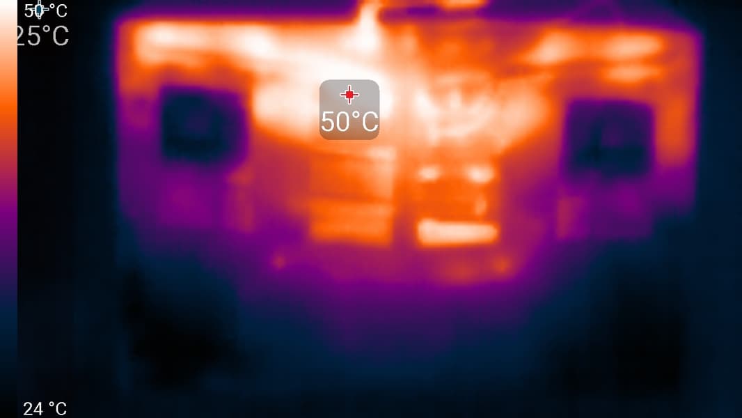 Толщина корпуса без учета крышки и опор составляет всего 15 мм — для портативной игровой системы это совсем не много. Поэтому система охлаждения призвана использовать внутренний объем с максимальной эффективностью. Отведение тепла от наиболее сильно разогревающихся компонентов производится тремя тепловыми трубками: по одной от CPU (слева) и GPU (справа), а также одной общей для обоих вычислителей. Благодаря такой конструкции оба кулера оказываются объединенными в одном контуре, но, забегая вперед, заметим, что соответствующие вентиляторы работают несинхронно и на разных скоростях при подаче нагрузки на центральный и на графический процессор.