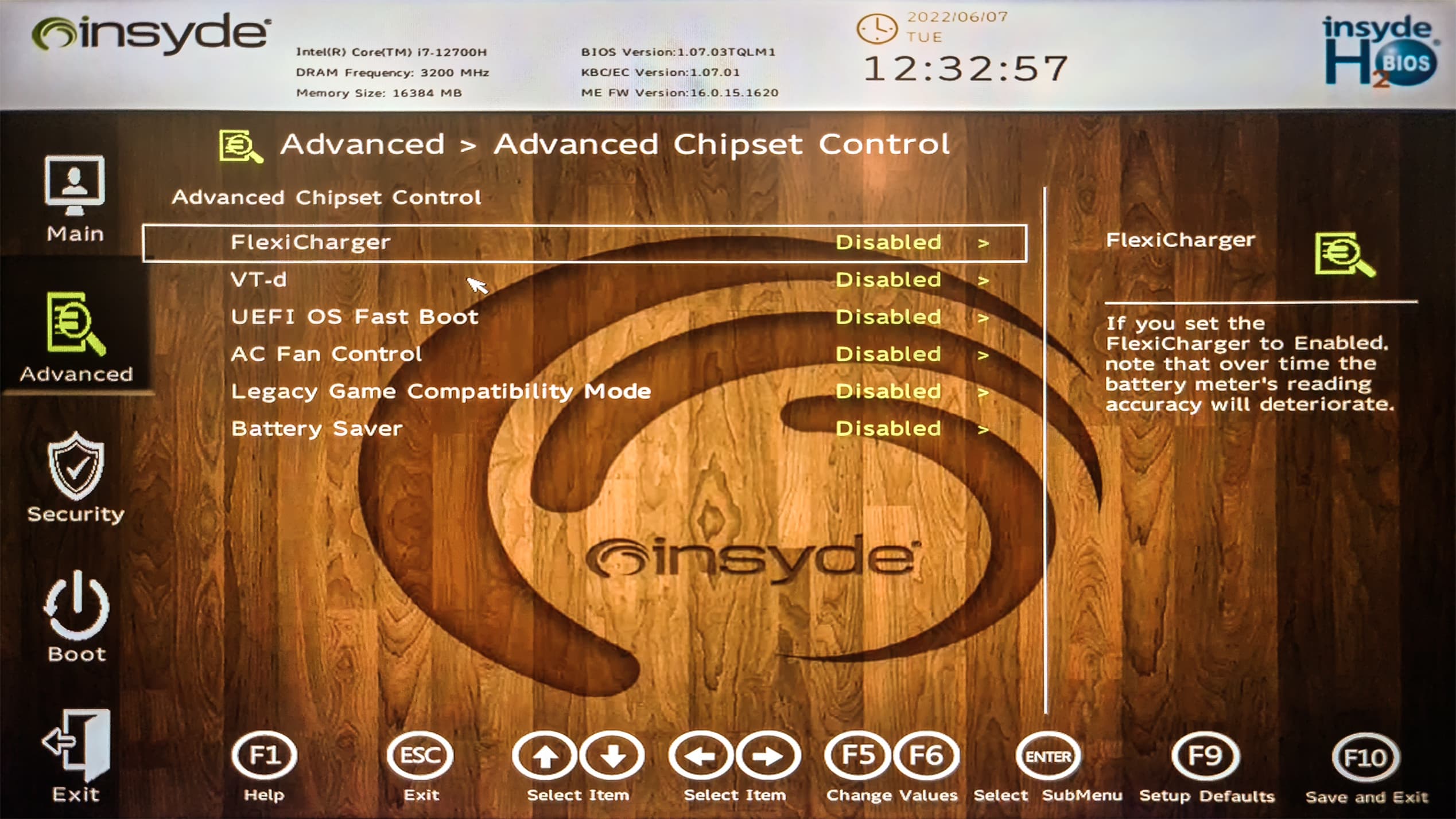 BIOS ноутбука создан тайваньской компанией Insyde (объем продаж в 2021 г. — 1,3 млрд долларов). Он обладает специфическим интерфейсом и некоторыми особенностями.