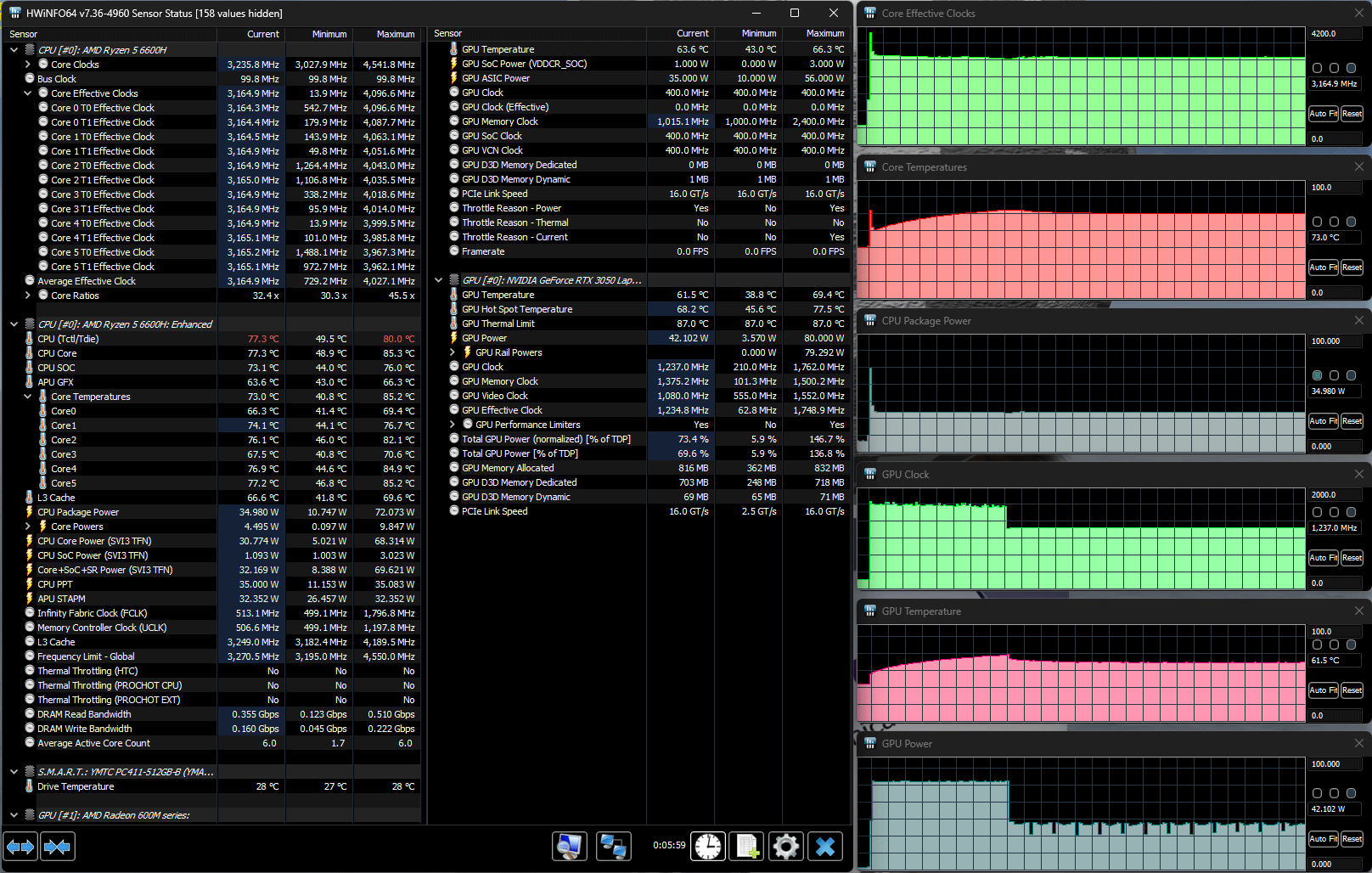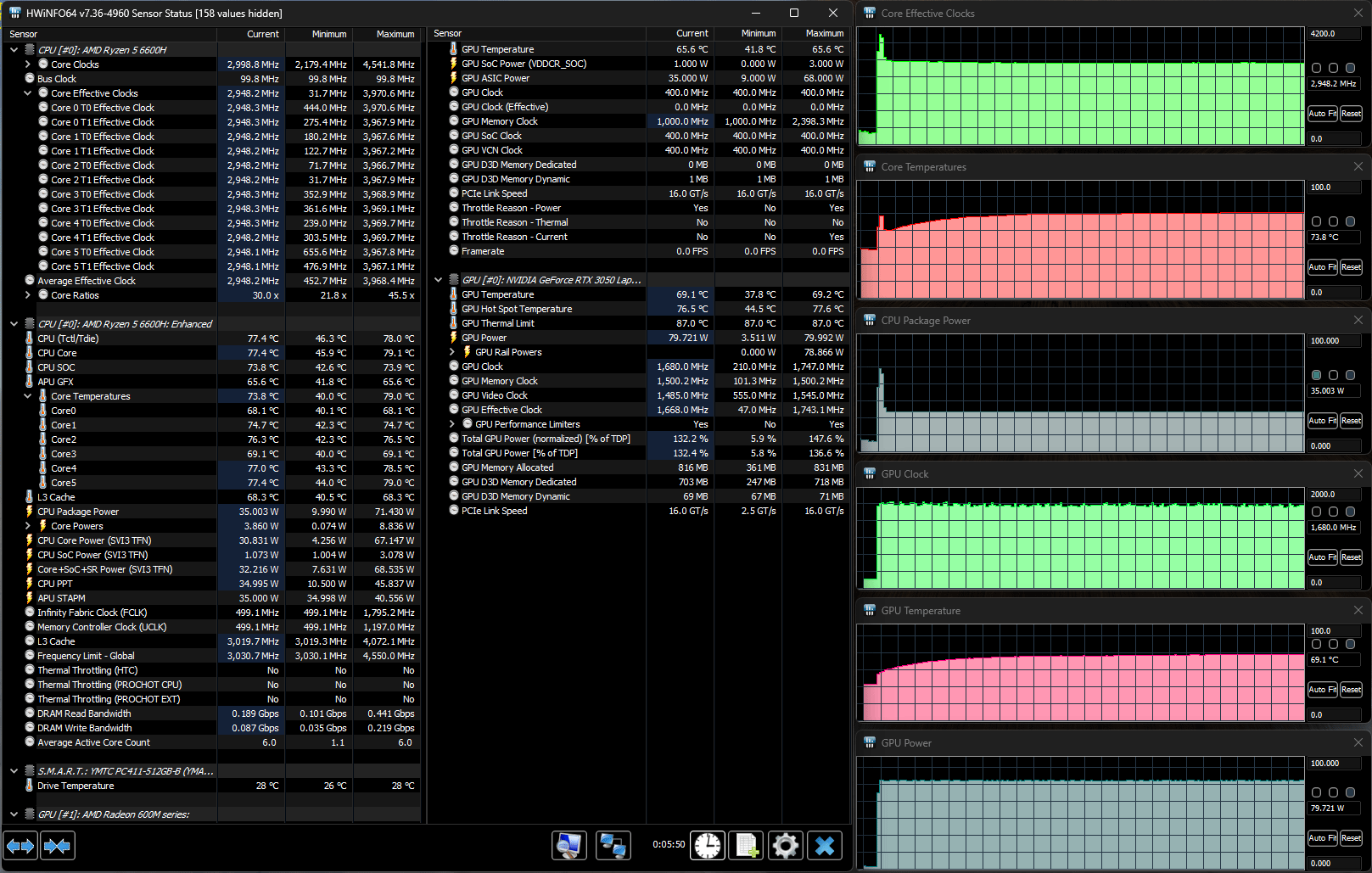| Видеоподсистема | дискретная Nvidia GeForce RTX 3050 Laptop (4 ГБ GDDR6) интегрированная AMD Radeon 660M | |