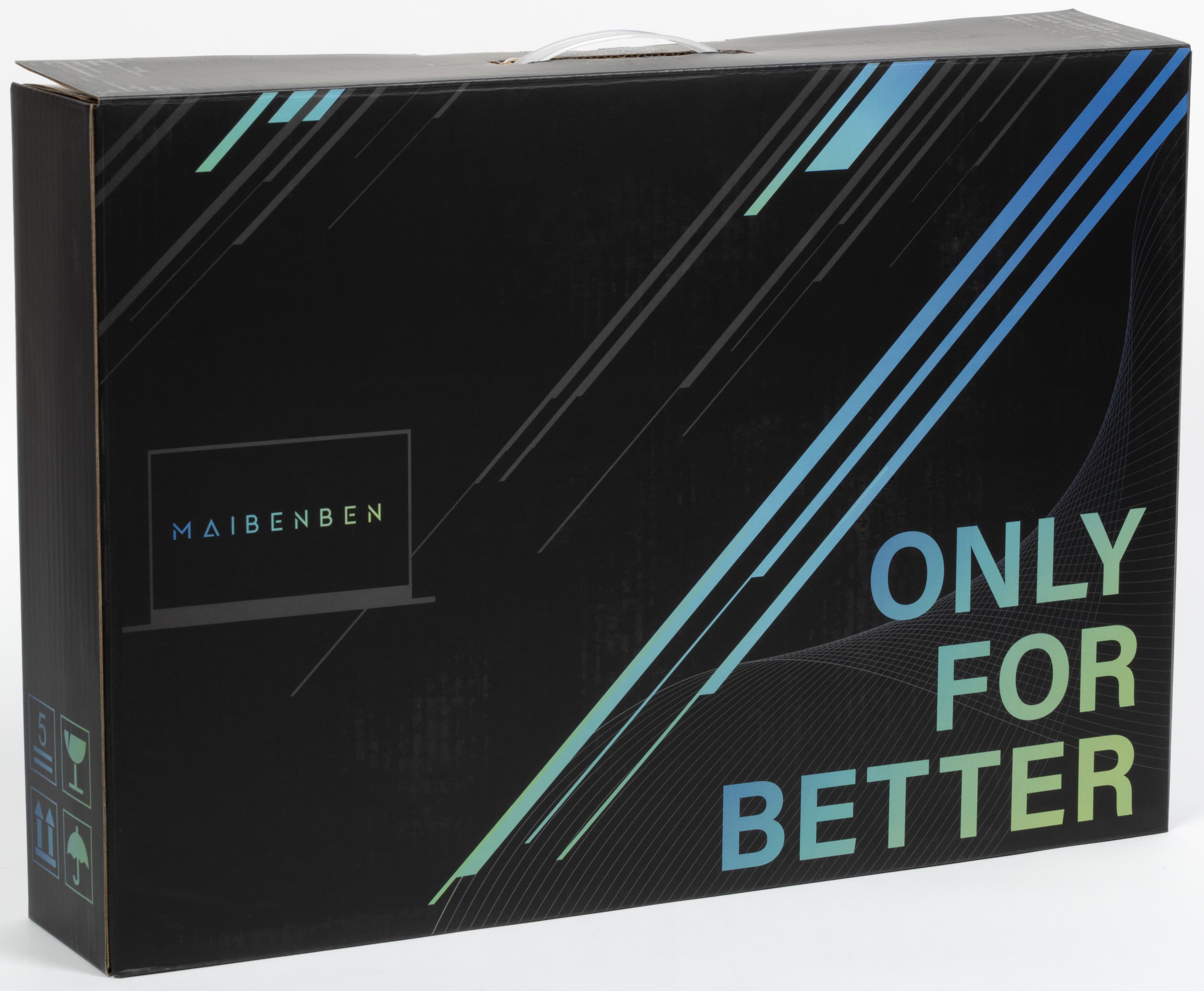 Ноутбук поставляется в корпусе черного цвета (о других вариантах не сообщается) и не имеет каких-либо украшений, кроме небольшой эмблемы на наружной части верхней крышки, а потому выглядит немного мрачновато — это вполне нормально для рабочего аппарата, но экстерьер игровой модели обычно делают повеселее. Хотя можно сказать, что аскетичность дизайна является характерной чертой ноутбуков Maibenben.