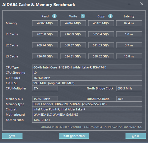 Ноутбук оснащен процессором, который умеет работать с оперативной памятью DDR5-4200. Однако подопытный экземпляр оснащен SO-DIMM предыдущего поколения (DDR4-3200) в виде двух равноценных модулей Crucial/Micron CT8G4SFS832A по 8 ГБ, благодаря чему память работает в двухканальном режиме.