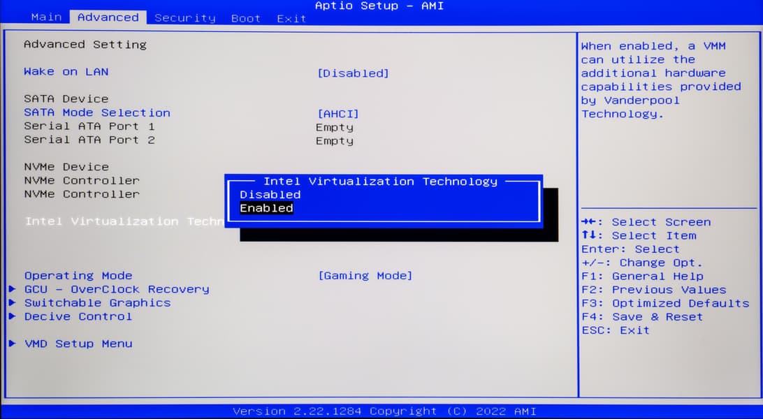 Следующий пункт — включение и выключение аппаратной поддержки виртуализации (Intel Virtualization Technology), то есть создания виртуальных машин.