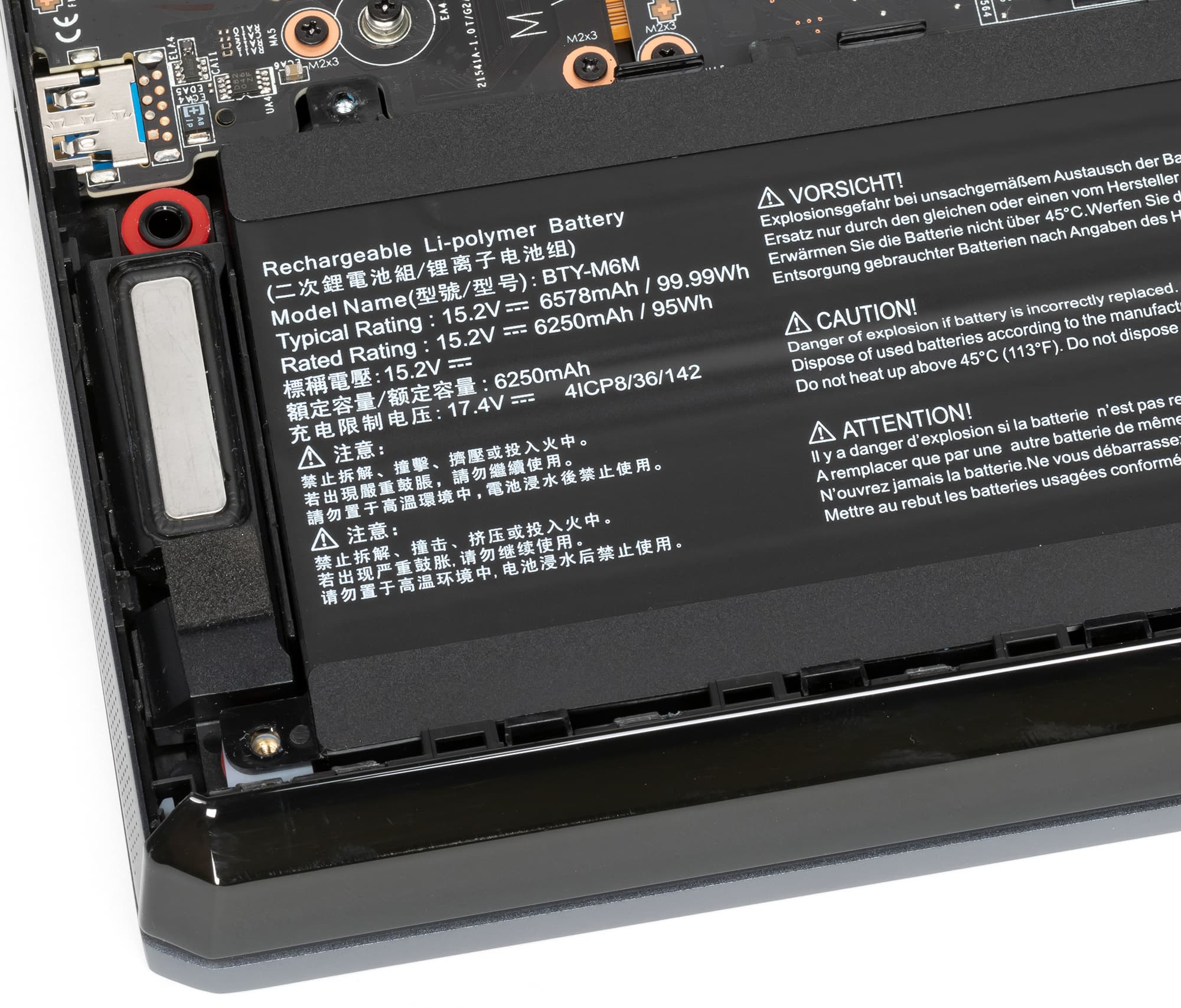 Емкость батареи ноутбука составляет 100 Вт·ч. Чтобы дать представление о том, как эти цифры соотносятся с реальной длительностью автономной работы, мы проводим тестирование по нашей методике с использованием скрипта iXBT Battery Benchmark v1.0. Яркость экрана при тестировании выставляется на 100 кд/м² (в данном случае это соответствует примерно 34%), так что ноутбуки с относительно тусклыми экранами не получают преимущества.