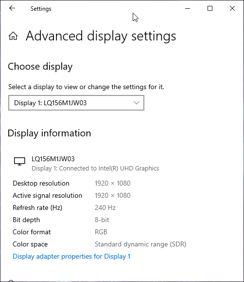 В ноутбуке MSI GE66 Raider 10SGS-062RU используется 15,6-дюймовая IPS-матрица с разрешением 1920×1080 (отчет с панели Intel, отчет MonInfo).