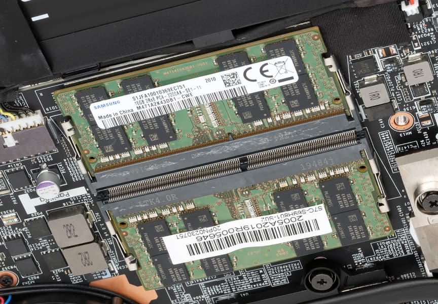 На этом снимке видны оба занятых слота оперативной памяти, в каждом установлен модуль на 16 ГБ: