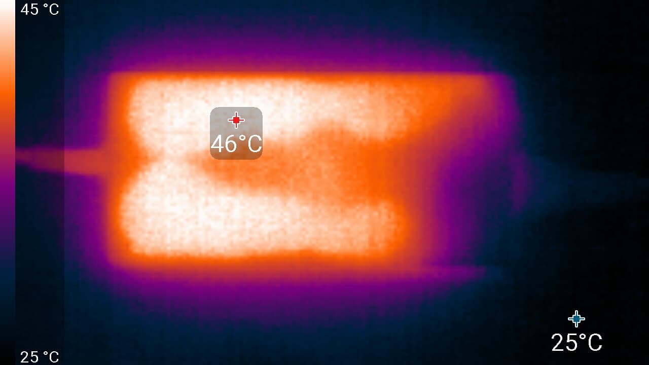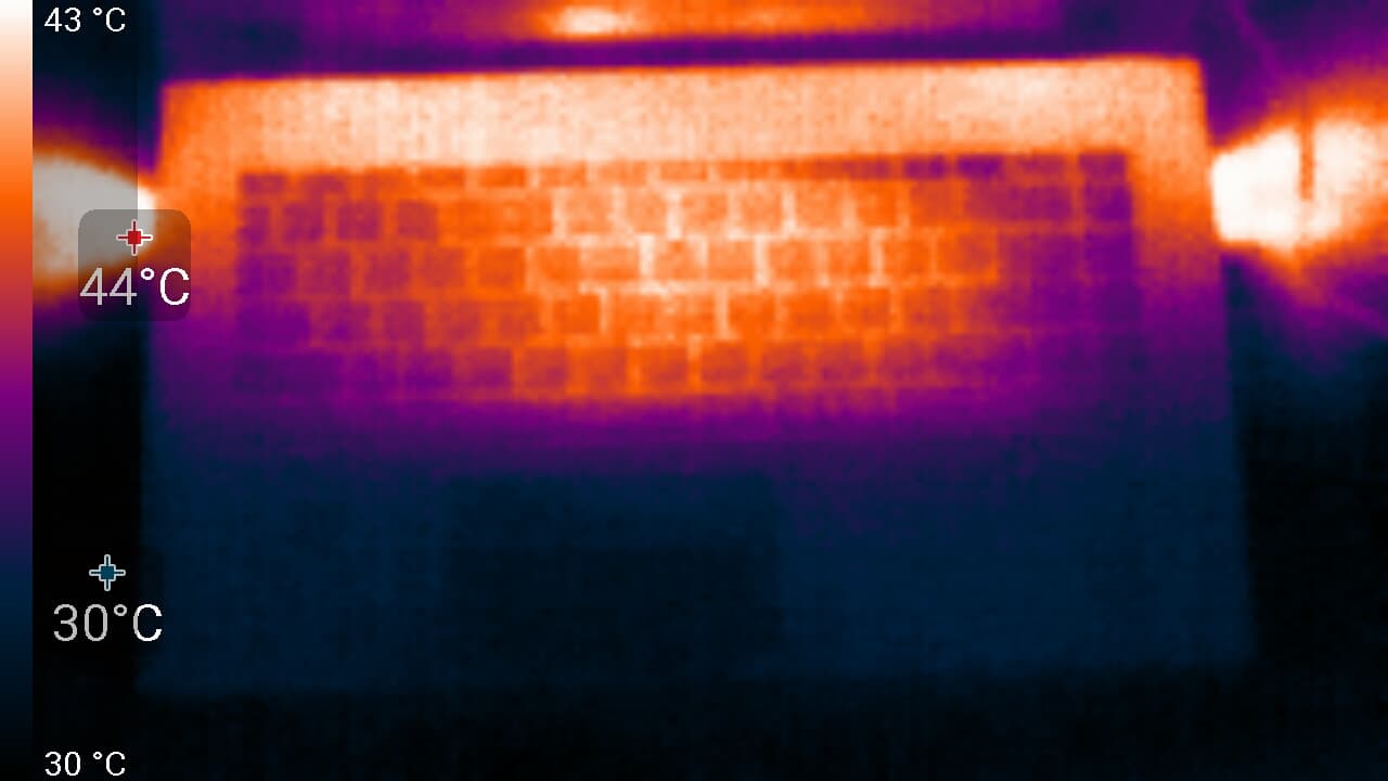 Под максимальной нагрузкой работать с клавиатурой комфортно, так как места под запястьями не греются. Держать ноутбук на коленях также особого дискомфорта не доставляет, поскольку выступы и решетки на днище не нагреваются. Блок питания нагревается существенно, при долговременной работе с большой производительностью обязательно нужно следить, чтобы он не был чем-то накрыт.