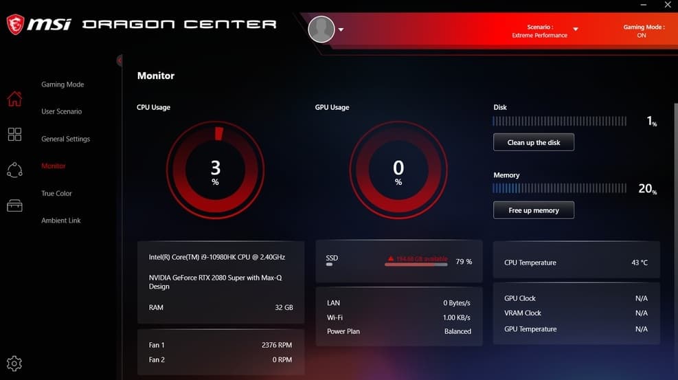 Фирменные утилиты позволяют оперативно настроить экран, скорость вращения вентиляторов и многое другое прямо на ходу, либо используя горячие клавиши на клавиатуре, либо в окне приложения. Например, можно поиграть в любимую игру, а потом, мгновенно сменив профиль цветового баланса, запустить киношку. Из минусов, пожалуй, размер экрана (ноутбук все равно лишь условно портативный, так что 17-дюймовая модель смотрелась бы более оправданно) и, конечно, цена.