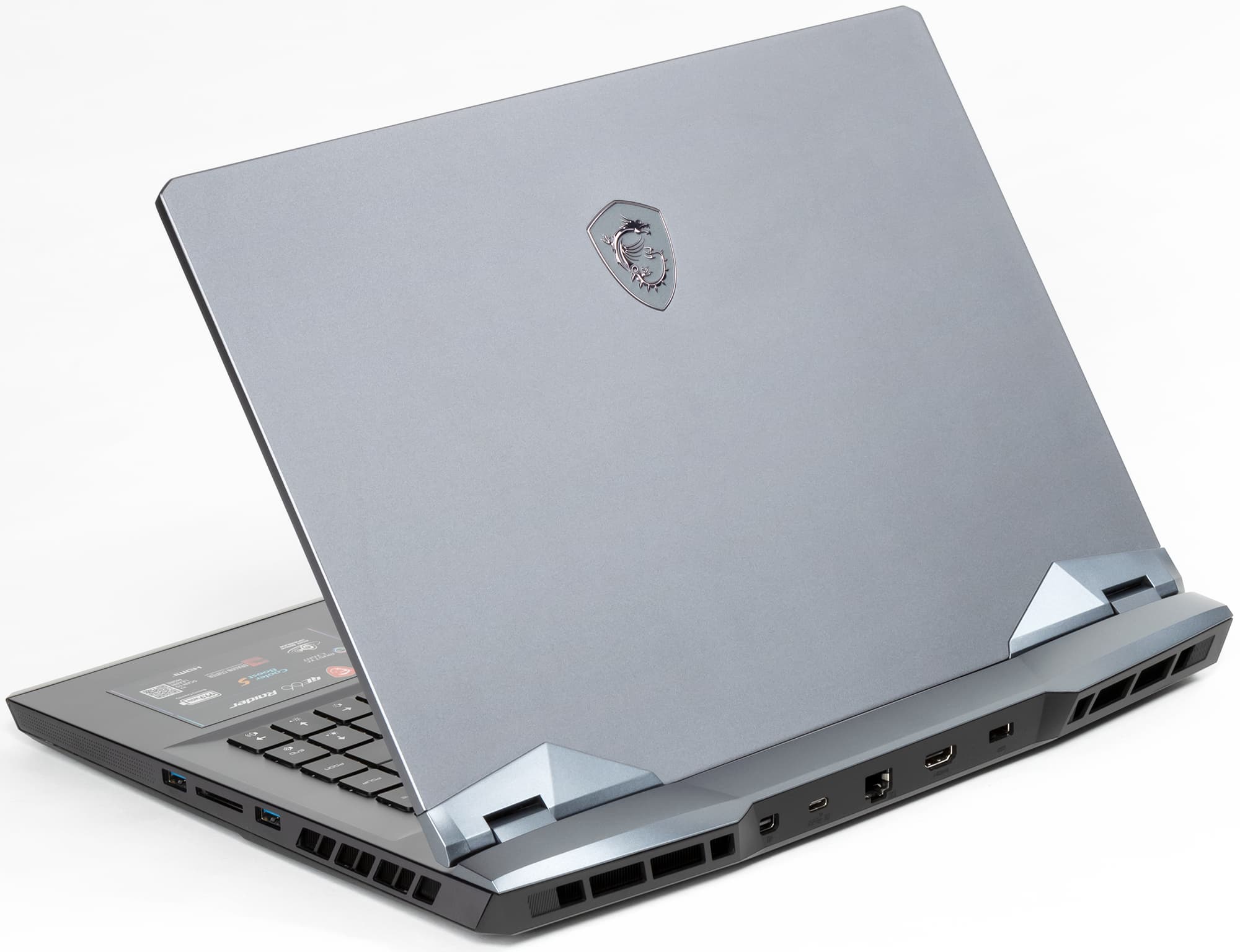 Если в Asus ROG Strix Scar 17 в качестве видеокарты использовалась младшая модификация старшей мобильной карты Nvidia GeForce RTX 2080 Super, то в MSI GE66 Raider — более консервативная Nvidia GeForce RTX 2080 Super в модификации Max-Q. Как обычно, Max-Q-версия не уступает «полноценной» по количеству исполнительных блоков и характеристикам памяти, однако работает на заметно более низких частотах, чтобы сохранить приемлемый уровень потребления энергии. В цифрах это выглядит так: младшая GeForce RTX 2080 Super потребляет 150 Вт при частоте ядра 1365/1560 МГц, а GeForce RTX 2080 Super Max-Q — 90 Вт при частоте ядра 975/1230 МГц. Объем 256-битной видеопамяти GDDR6 в обоих случаях составляет 8 ГБ.