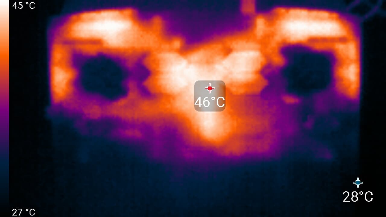 В обычном режиме при просмотре видео или серфинге по интернету шум от системы охлаждения не обращает на себя внимания. Но в процессе прохождения игры поднимается достаточно громкий шум, чтобы пробиваться сквозь наушники. Тепло отводится через отверстия по бокам и сзади корпуса. Это можно использовать для обогрева стола и холодных пальцев рук между играми.