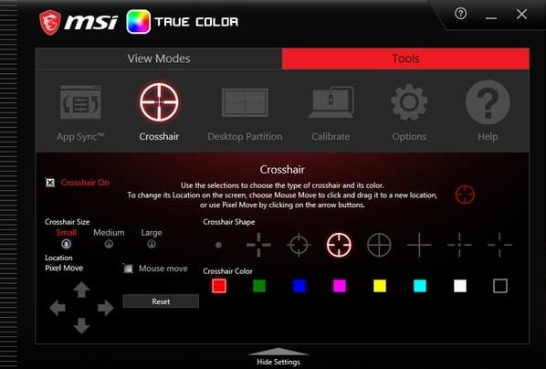 В частности, настройкой Gamma можно поднять скорость роста яркости в тенях, пожертвовав завалом в светах всего на пару оттенков. Это улучшит различимость деталей в тенях, что, в свою очередь, может улучшить результативность в играх с темными сценами. В этом профиле с настройками по умолчанию, по всей видимости, отсутствуют какие-либо вмешательства в исходные свойства матрицы: яркость максимальная, графики гамма-кривой, цветовой температуры и ΔE самые гладкие. Кроме того, данная утилита позволяет привязать профиль изображения к приложению, вывести на экран прицел выбранной формы и цвета, облегчить распределение окон на рабочем столе и выполнить аппаратную калибровку (наш спектрофотометр не поддерживается).