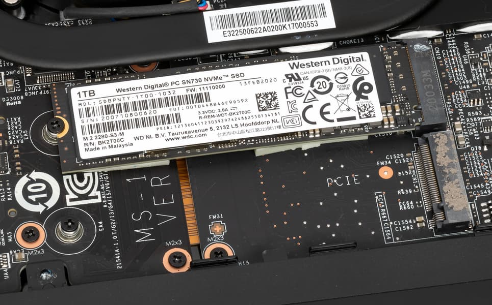 SSD-диск, установленный в слот M.2 2280; при желании можно поставить второй накопитель в пустующий соседний слот с поддержкой PCIe и SATA: