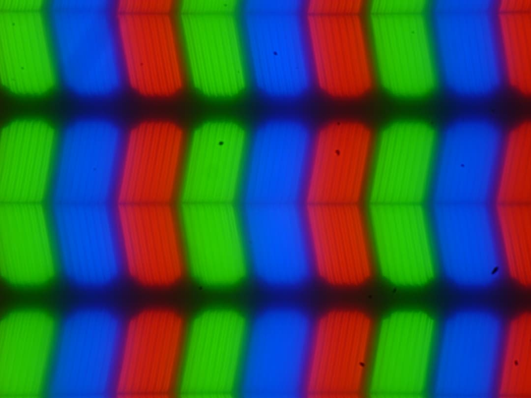 В этом ноутбуке используется матрица типа IPS. Микрофотографии демонстрируют типичную для IPS структуру субпикселей (черные точки — это пыль на матрице фотоаппарата):